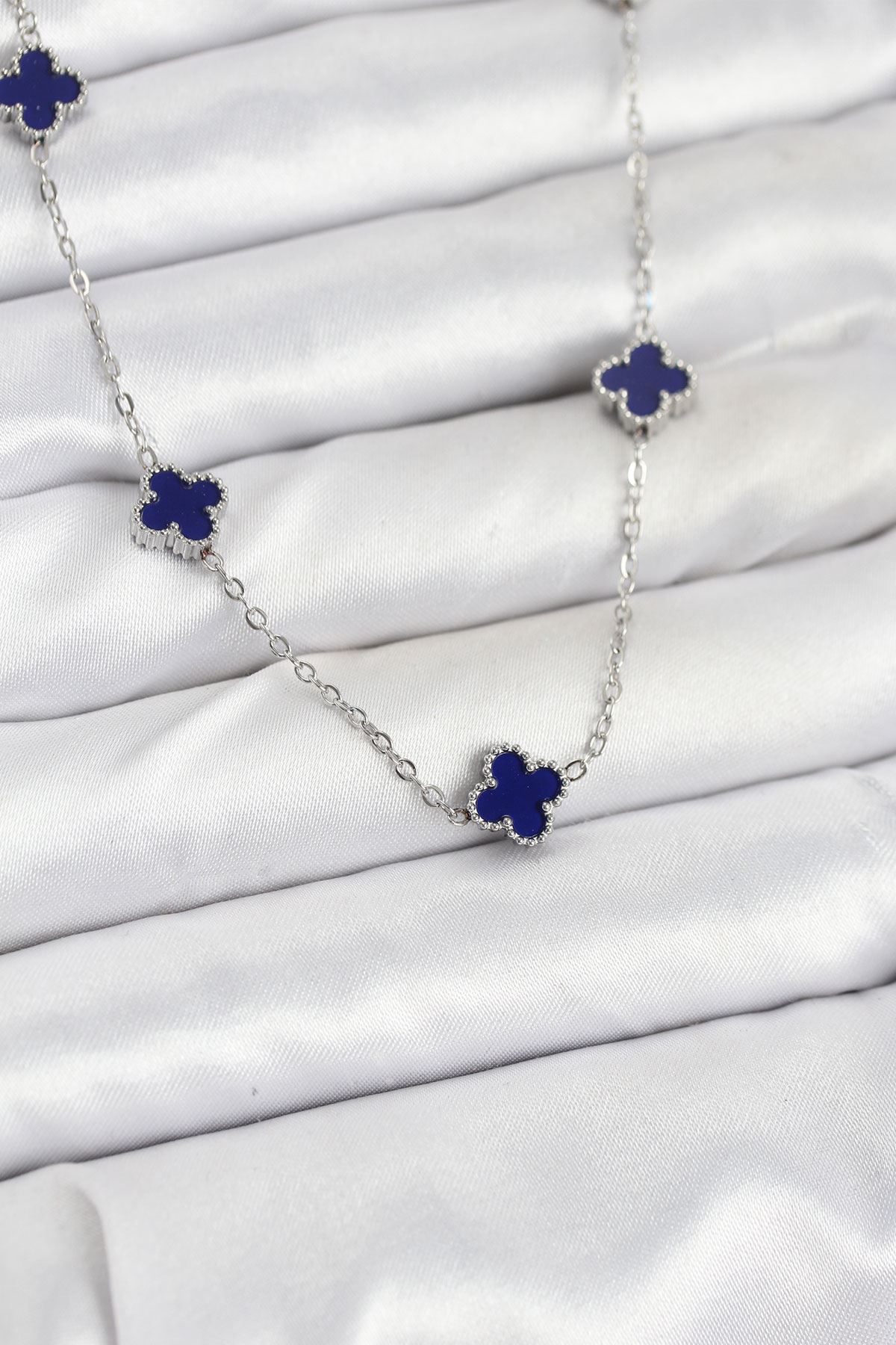 YRTCL 316L Çelik Zincir Gümüş Renk Lacivert Baby Boy Yonca Kadın Kolye