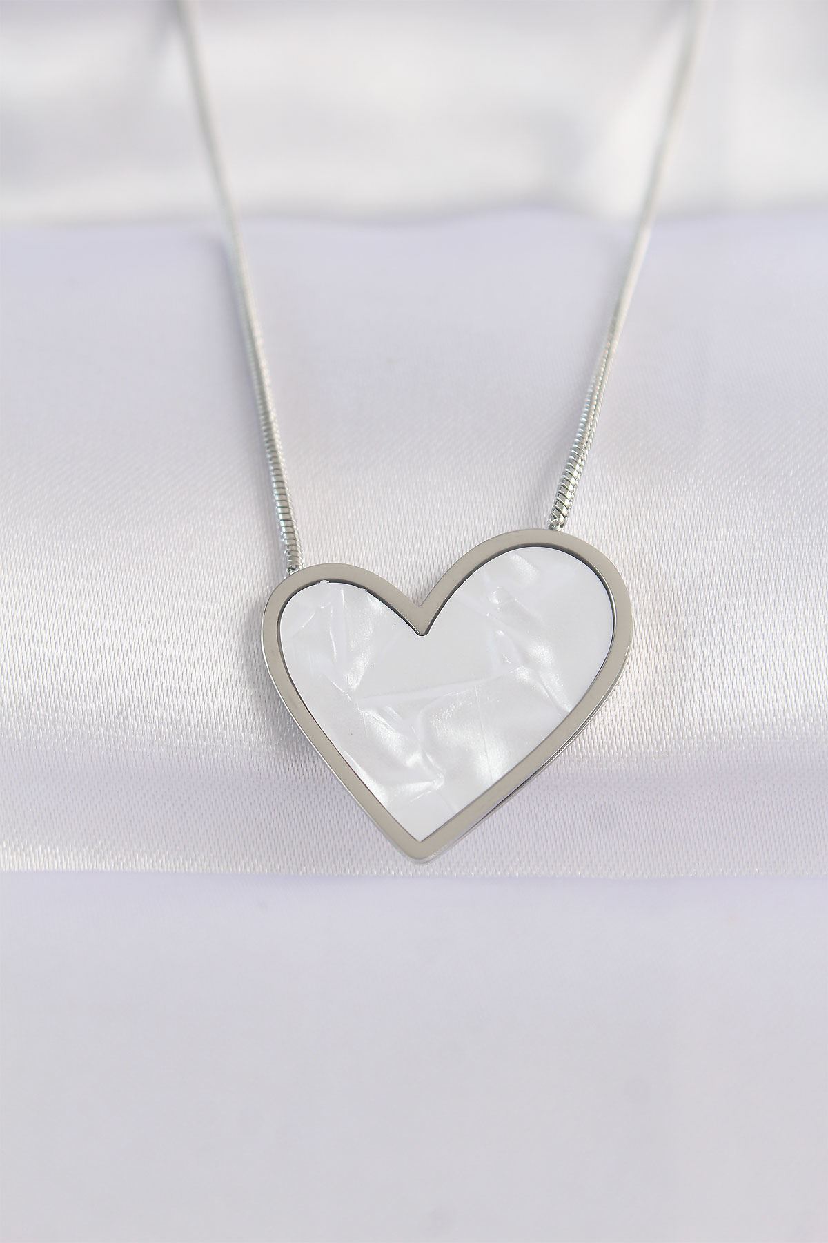 YRTCL 316L Çelik Zincir Gümüş Renk Mermer Desenli Kalp Kolye