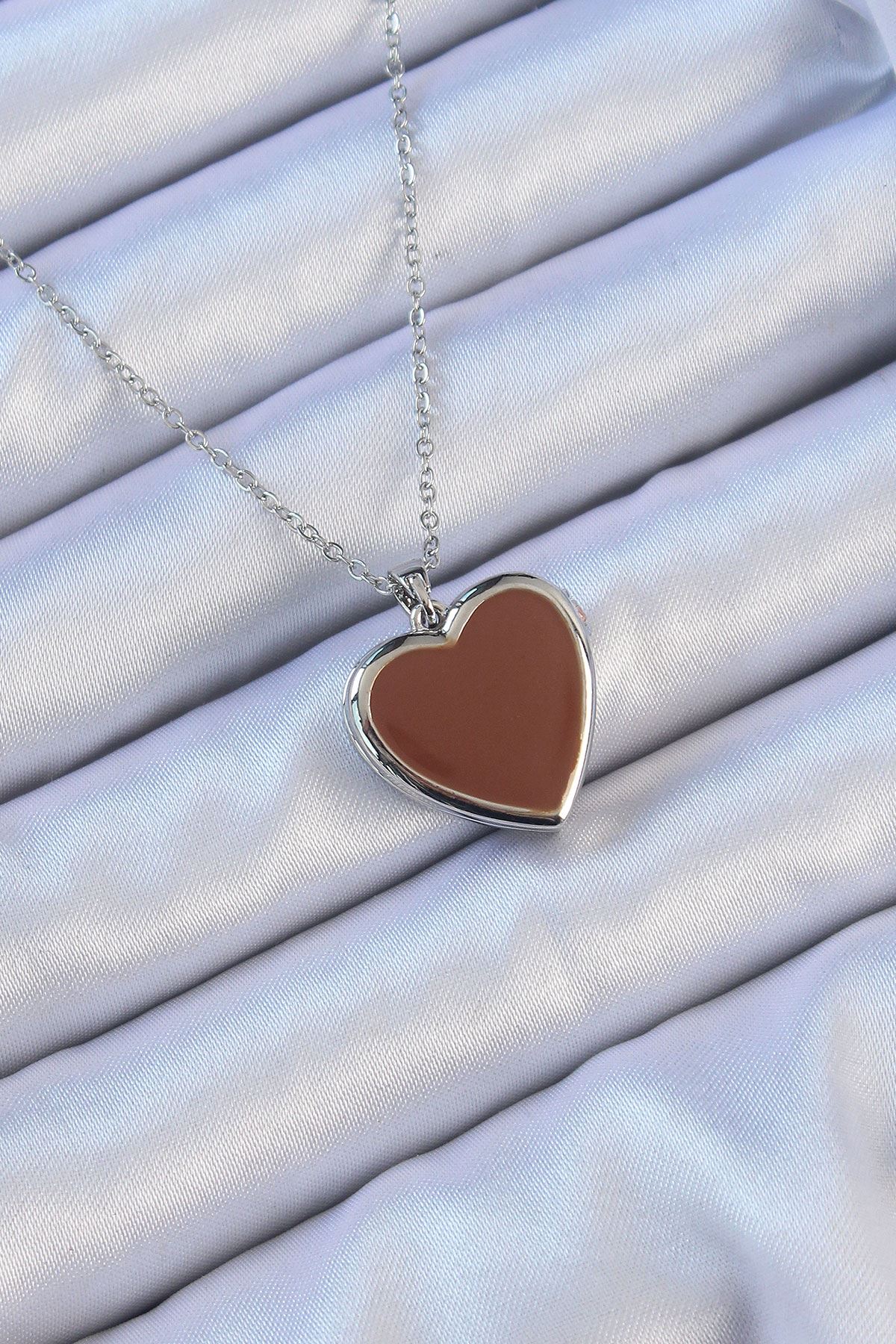 YRTCL 316L Çelik Zincir Gümüş Renk Mineli İçi Açılan Kalp Kolye
