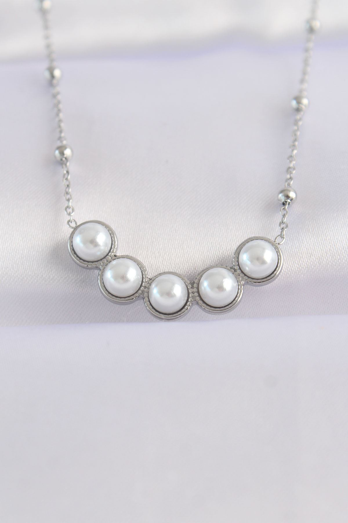 YRTCL 316L Çelik Zincir Gümüş Renk Sıralı İnci Taşlı Kolye