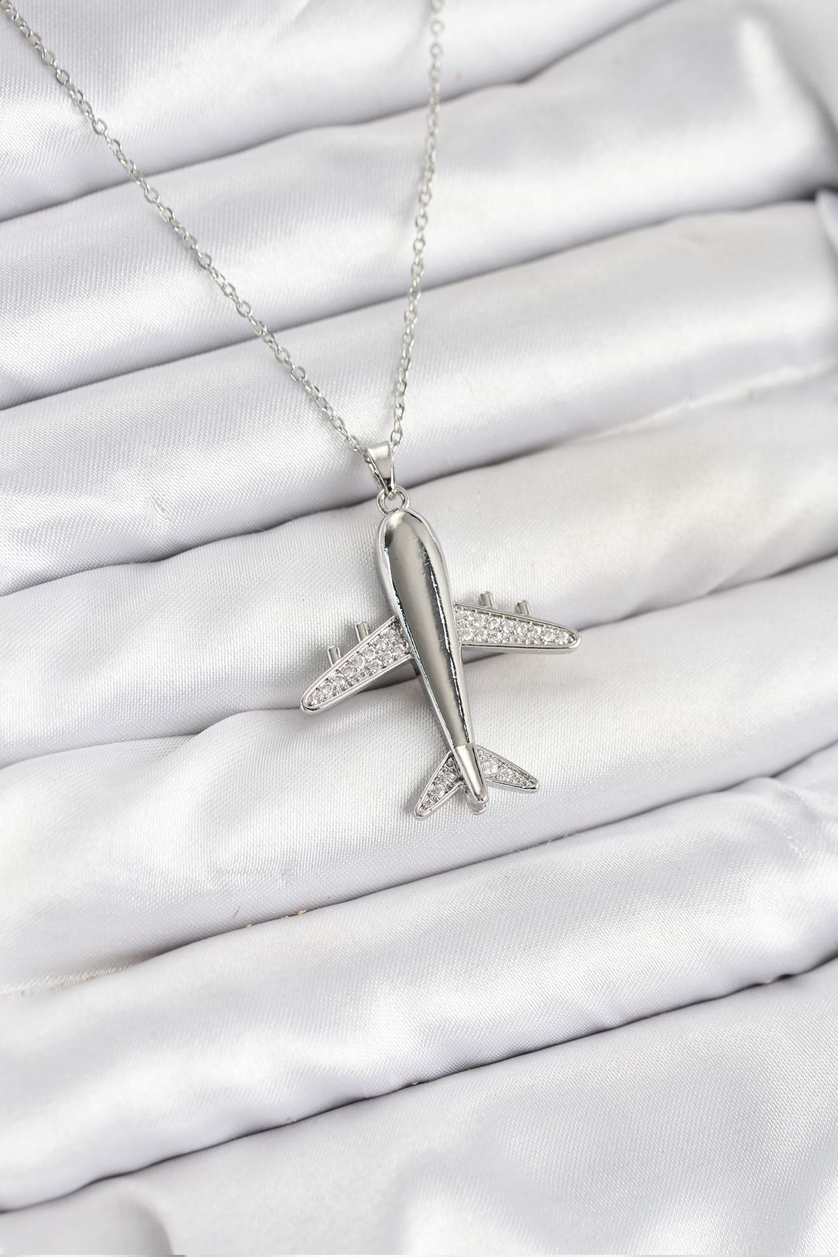 YRTCL 316L Çelik Zincir Gümüş Renk Uçak Model Kadın Kolye
