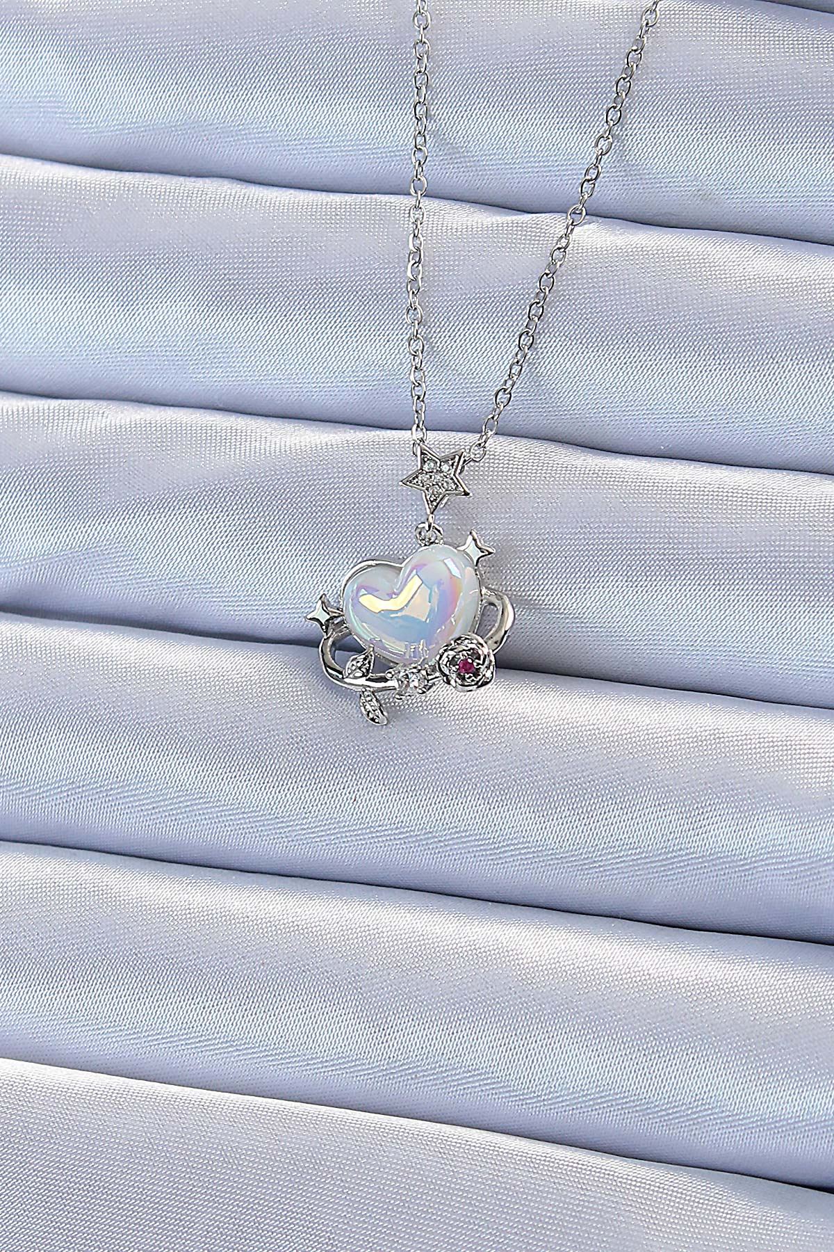 YRTCL 316L Çelik Zincir Gümüş Renk Zirkon Taşlı Gezegen Görünümlü Kalp Kolye