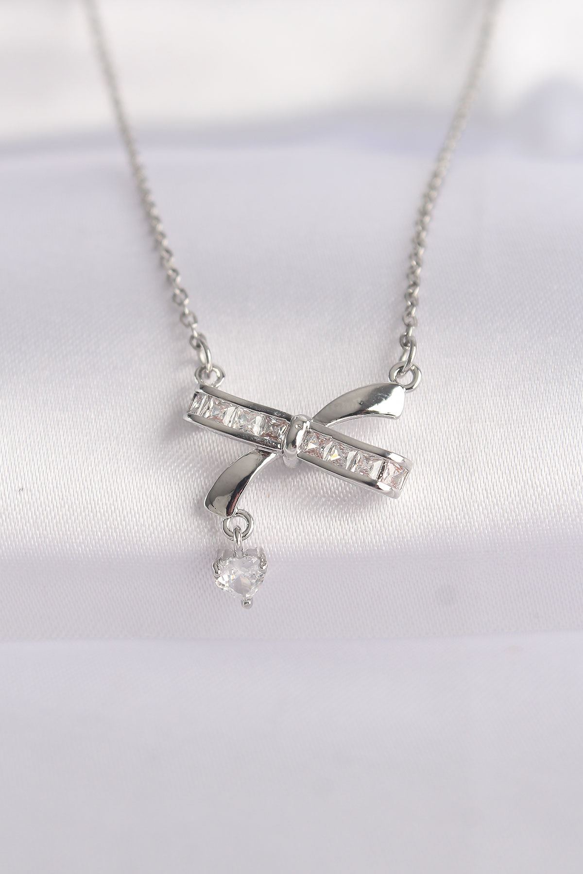 YRTCL 316L Çelik Zincir Gümüş Renk Zirkon Taşlı Kalp Detay Fiyonk Kolye