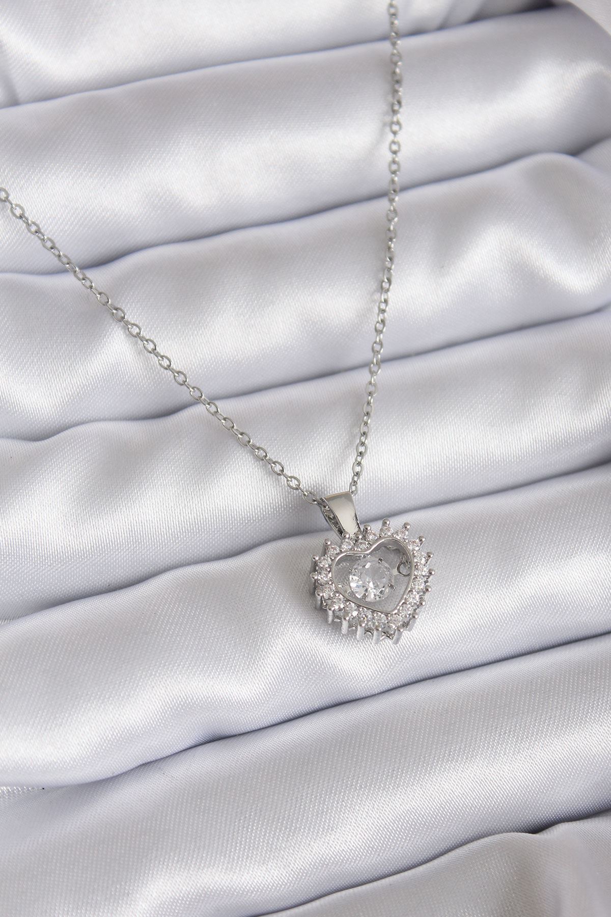 YRTCL 316L Çelik Zincir Gümüş Renk Zirkon Taşlı Kalp Model Kadın Kolye