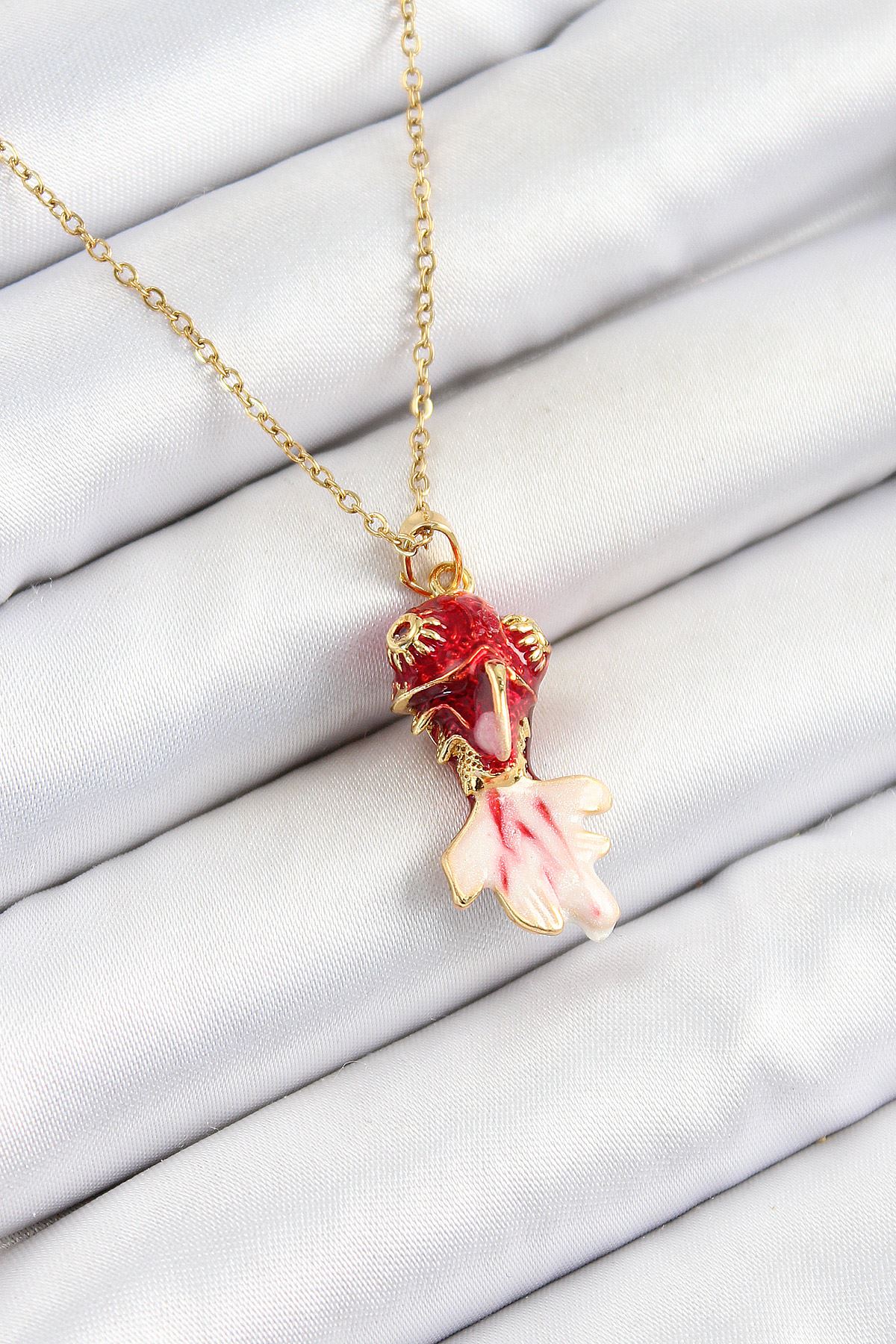 YRTCL 316L Çelik Zincir Kırmızı Balık Model Gold Renk Kadın Kolye