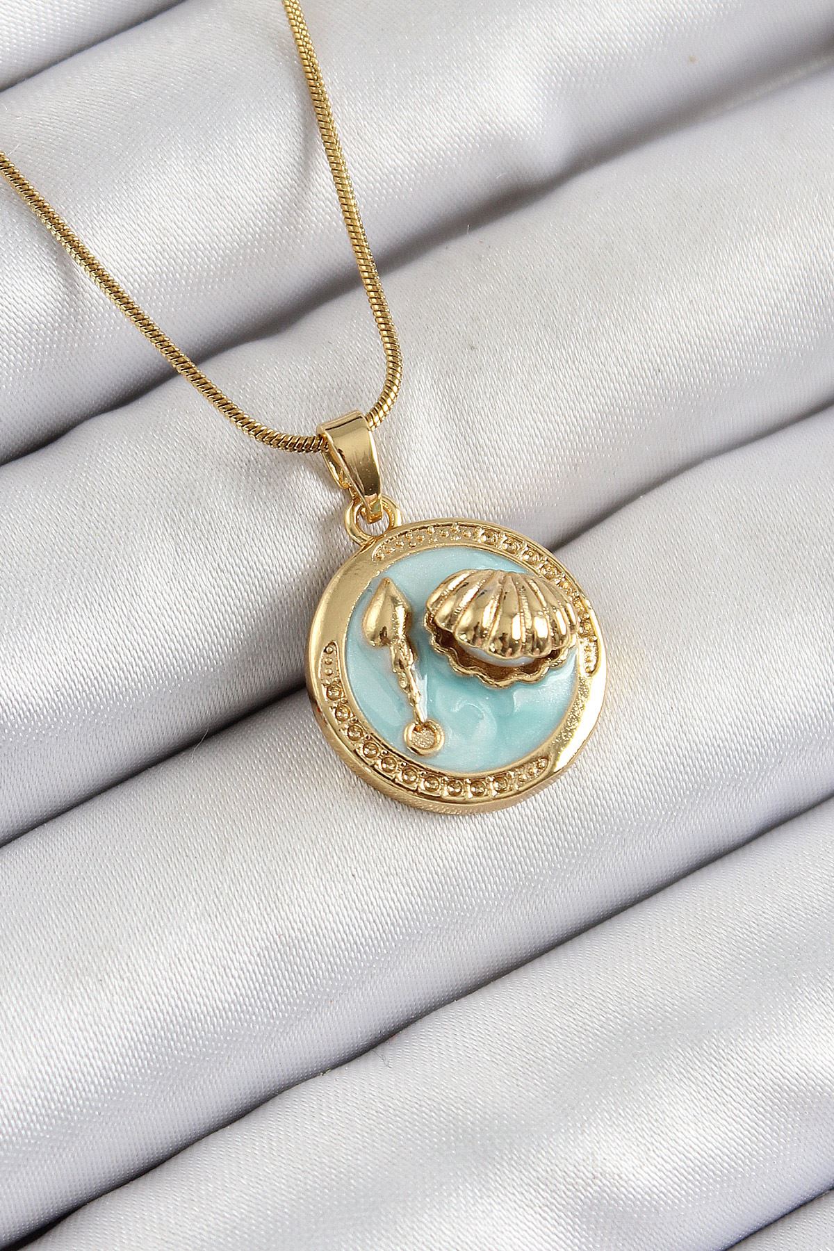 YRTCL 316L Çelik Zincir Turkuaz Mineli Sanatsal Portre İstiridye Model Gold Renk Kadın Kolye