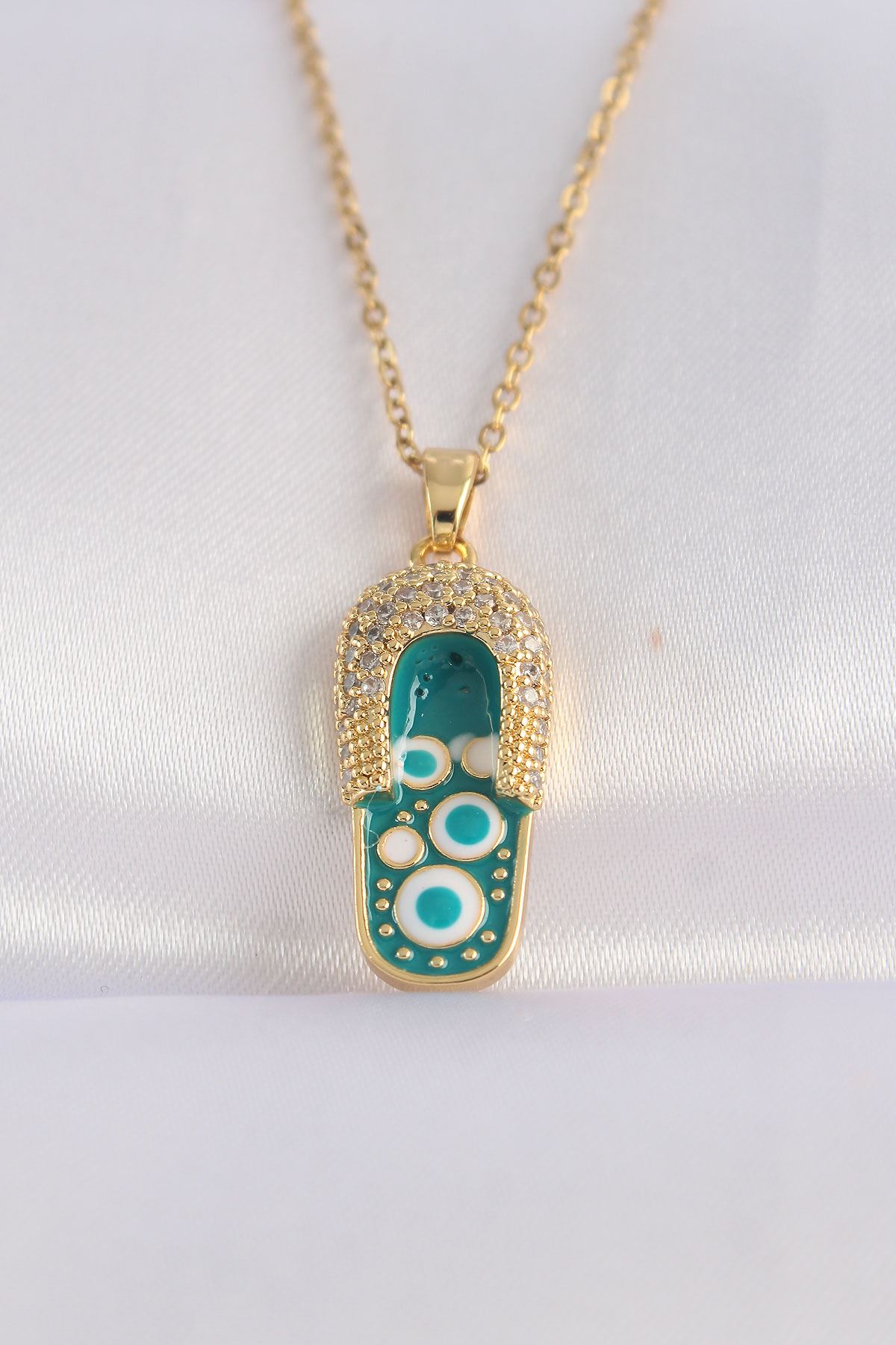 YRTCL 316L Çelik Zincir Zirkon Taşlı Altın Renk Nazarlı Terlik Tasarımlı Kolye