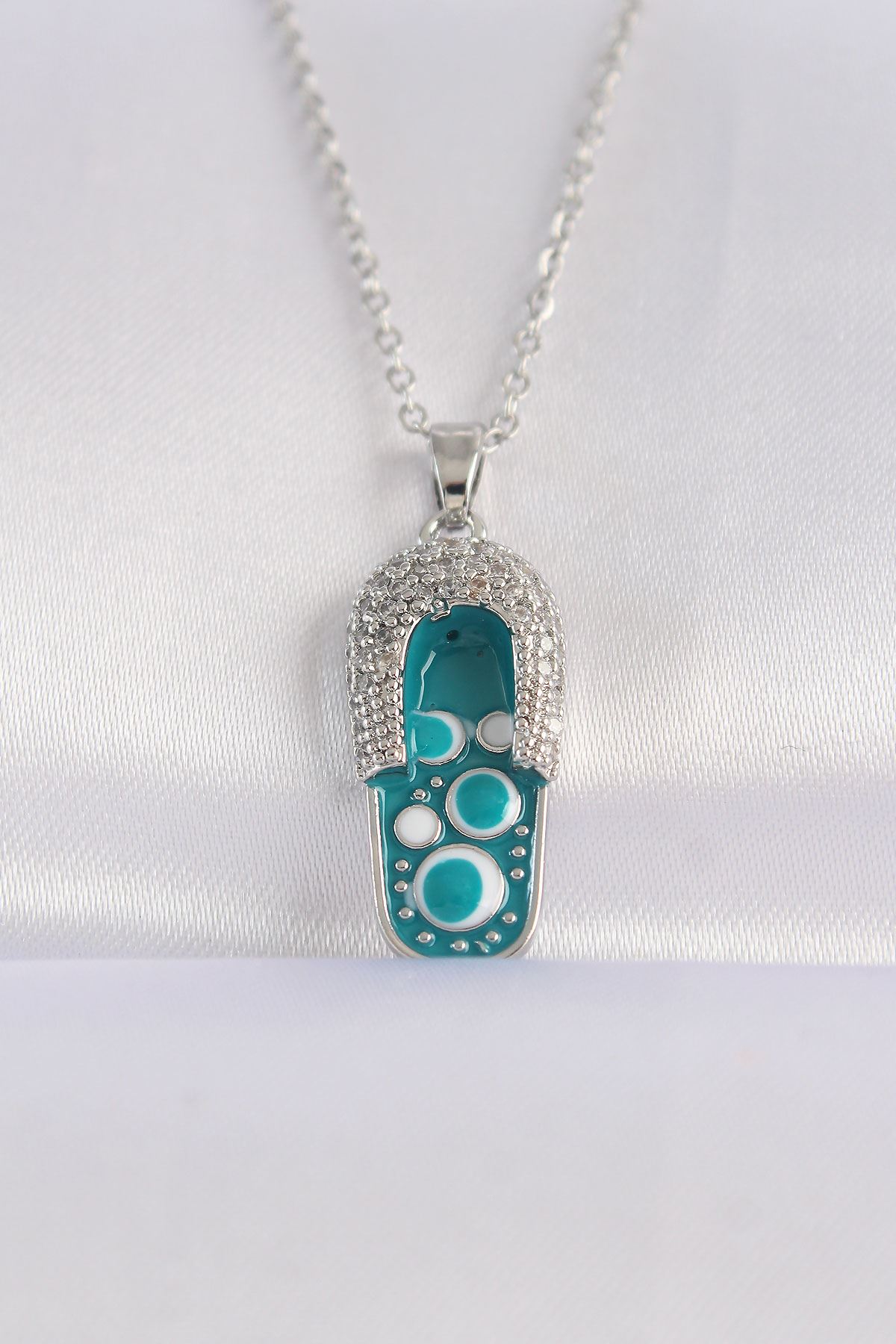 YRTCL 316L Çelik Zincir Zirkon Taşlı Gümüş Renk Nazarlı Terlik Tasarımlı Kolye