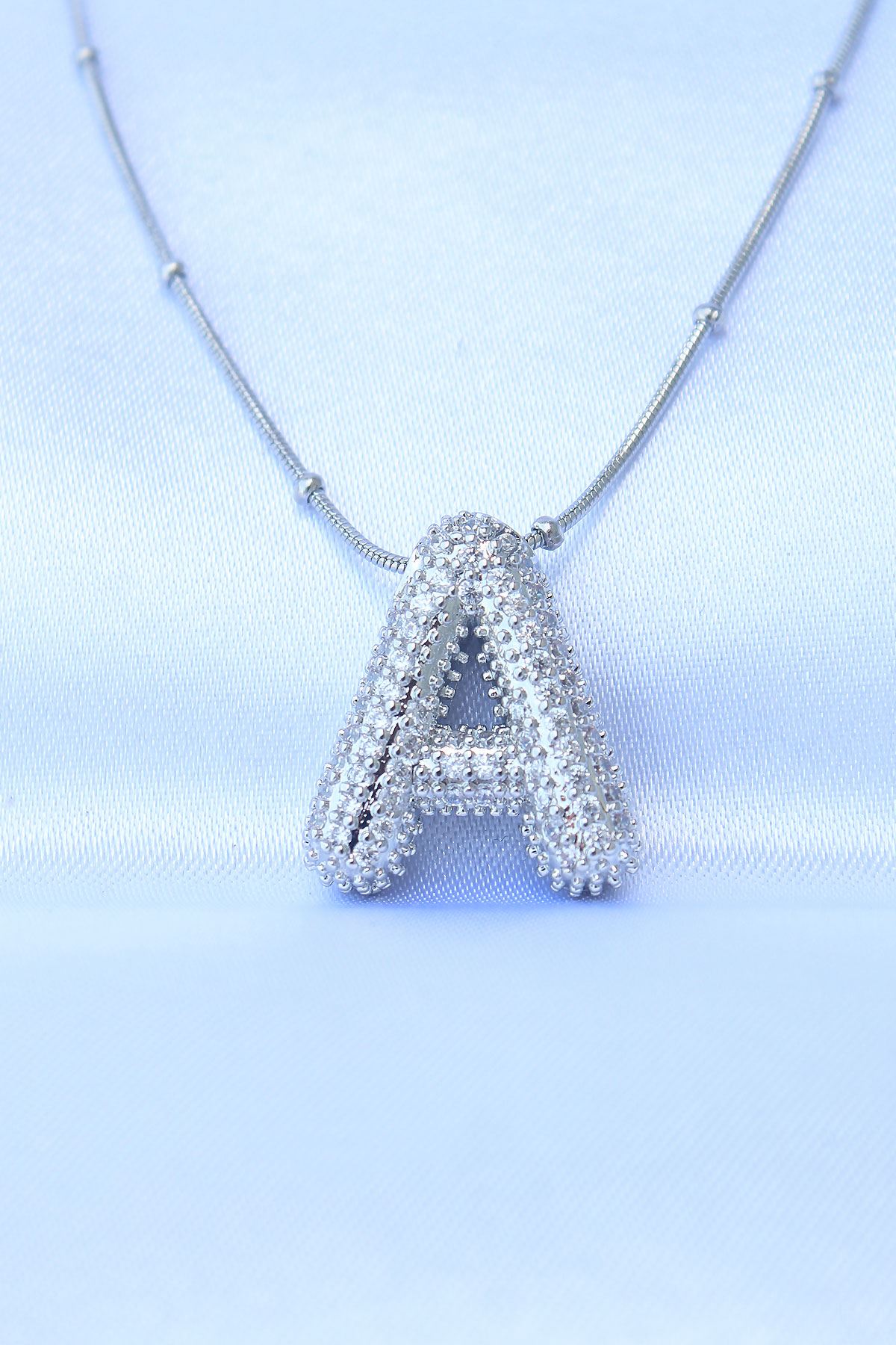 YRTCL 316L Çelik Zincirli Zirkon Taşlı A Harfli Gümüş Renk Bubble Kolye