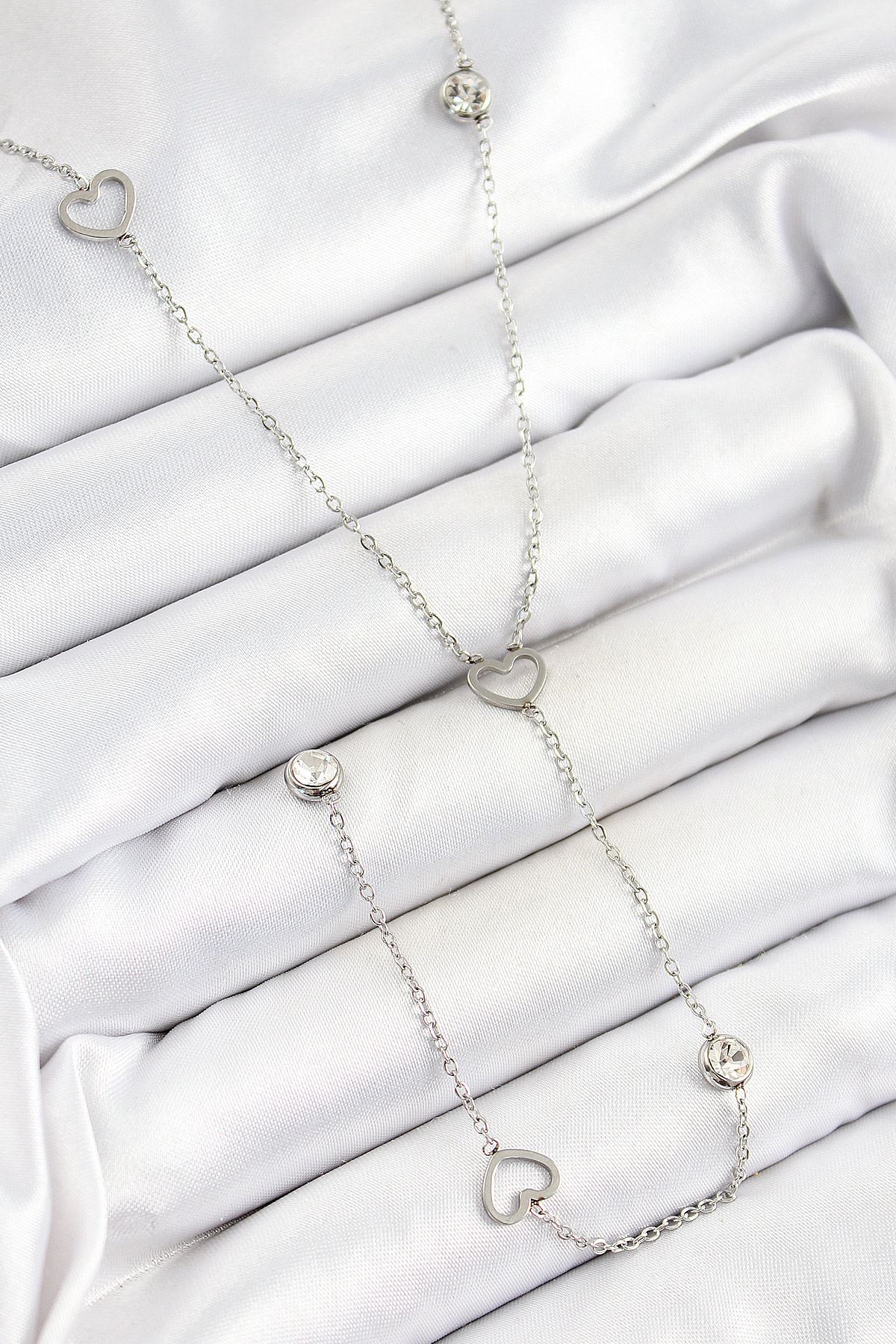 YRTCL 316L Çelik Zirkon Taşlı Kalp Figürlü Y Model Gümüş Renk Kadın Kolye