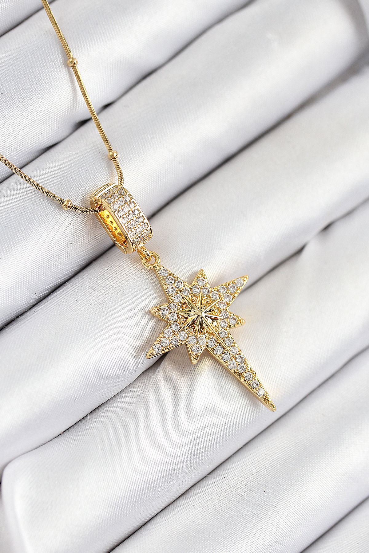 YRTCL 316L Çelik Zirkon Taşlı Kutup Yıldızı Model Gold Renk Kadın Kolye