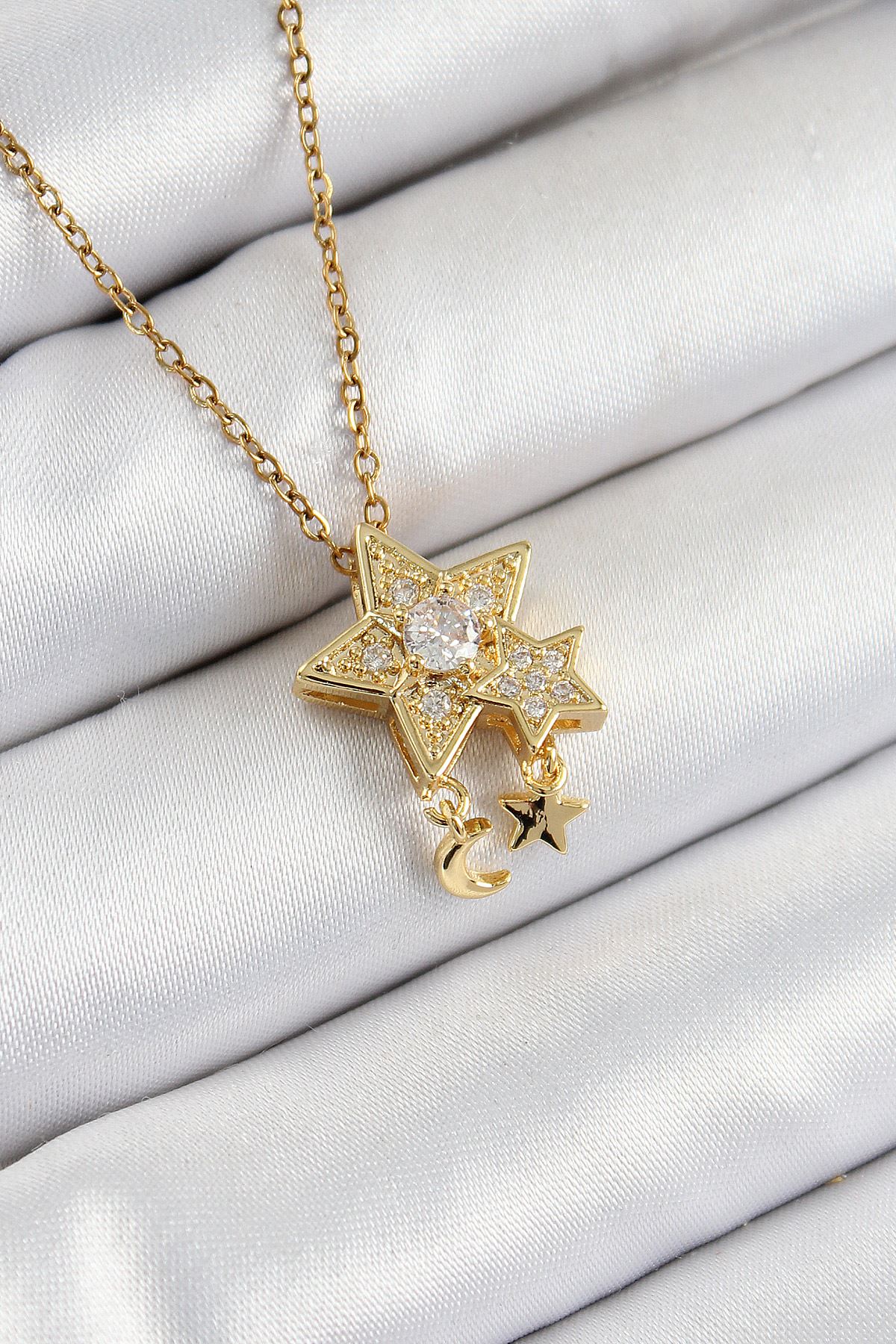 YRTCL 316L Çelik Zirkon Taşlı Sallantılı Yıldız Model Gold Renk Kadın Kolye