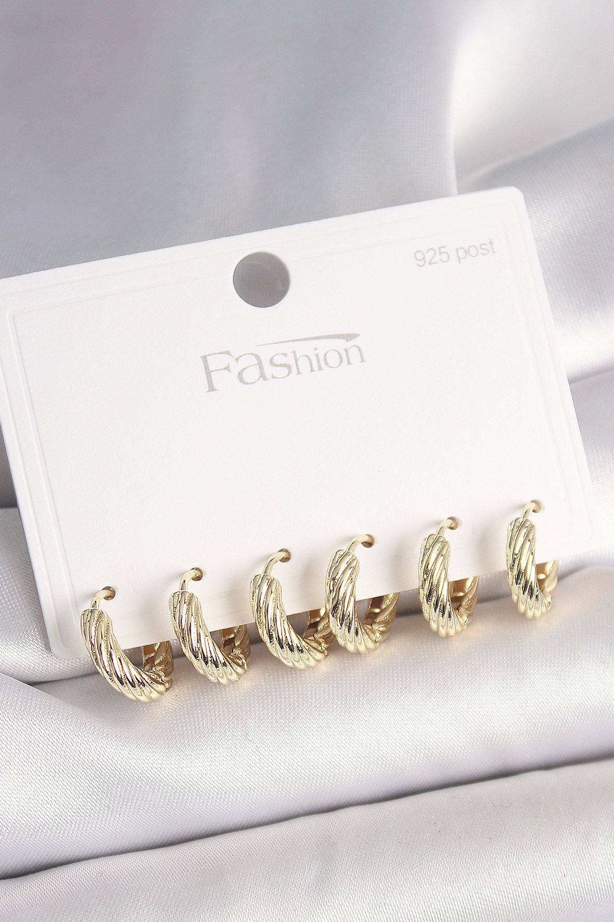 YRTCL 925 Ayar Gümüş Çivi Pirinç Gold Renk İşlemeli Halka Model Kadın Küpe Seti