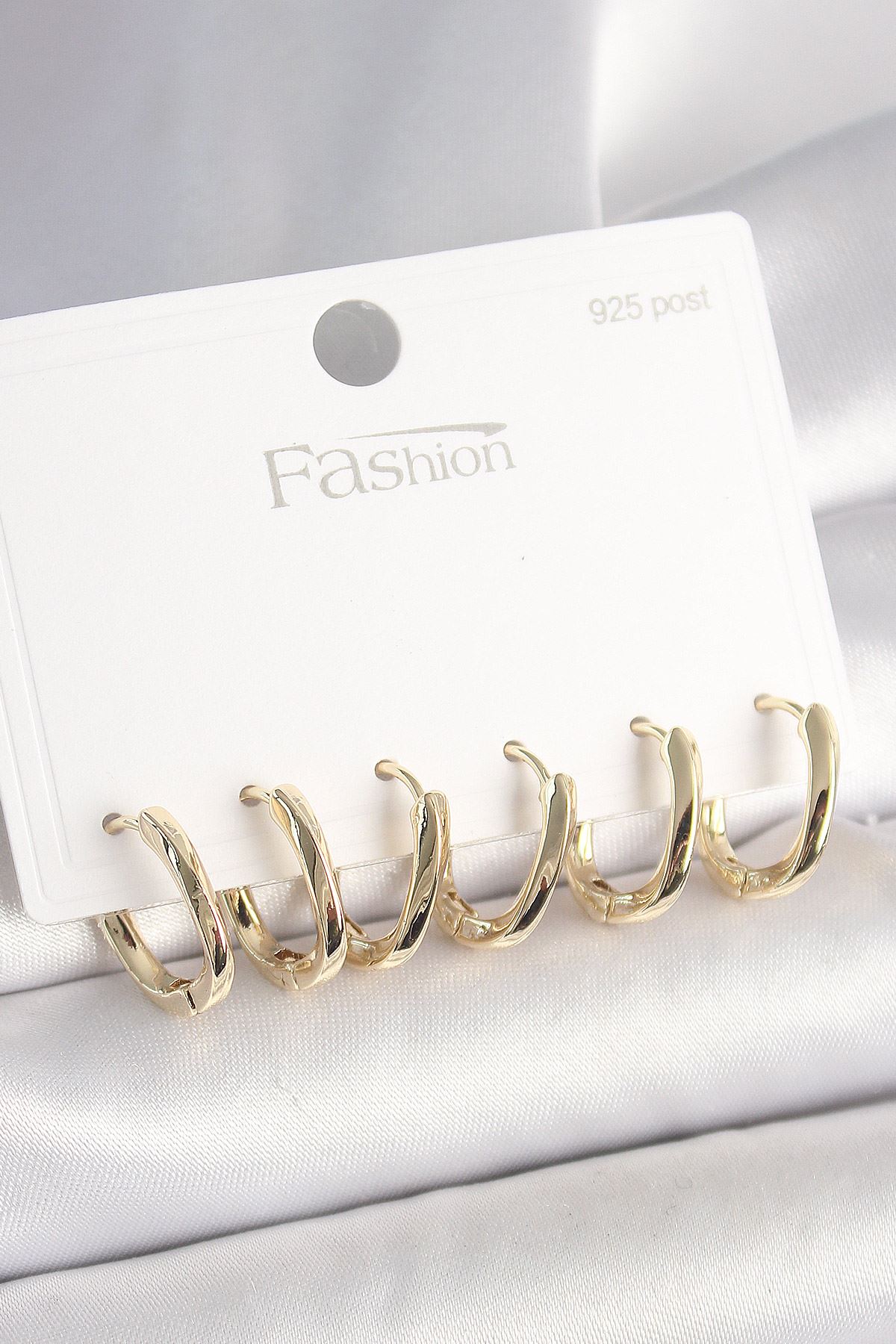 YRTCL 925 Ayar Gümüş Çivi Pirinç Gold Renk Oval Halka Model Kadın Küpe Seti