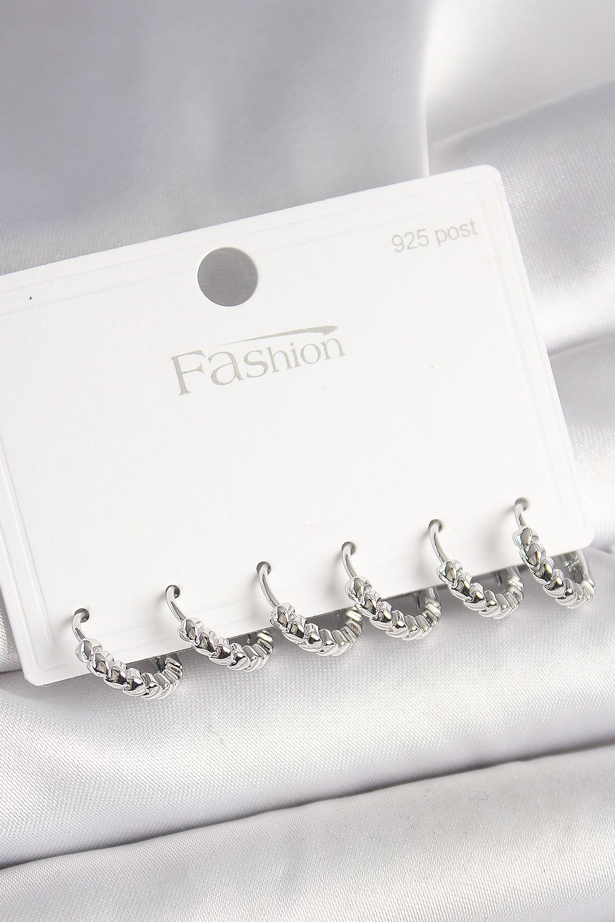 YRTCL 925 Ayar Gümüş Çivi Pirinç Gümüş Renk Kalp İşlemeli Halka Model Kadın Küpe Seti