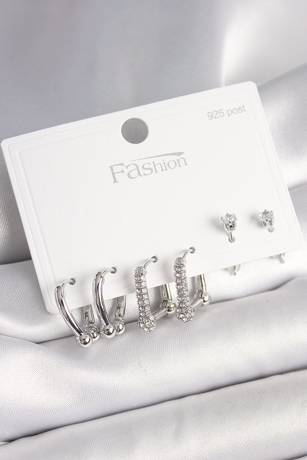 YRTCL 925 Ayar Gümüş Çivi Pirinç Gümüş Renk Zirkon Taşlı Tiffany Halka Model Kadın Küpe Seti
