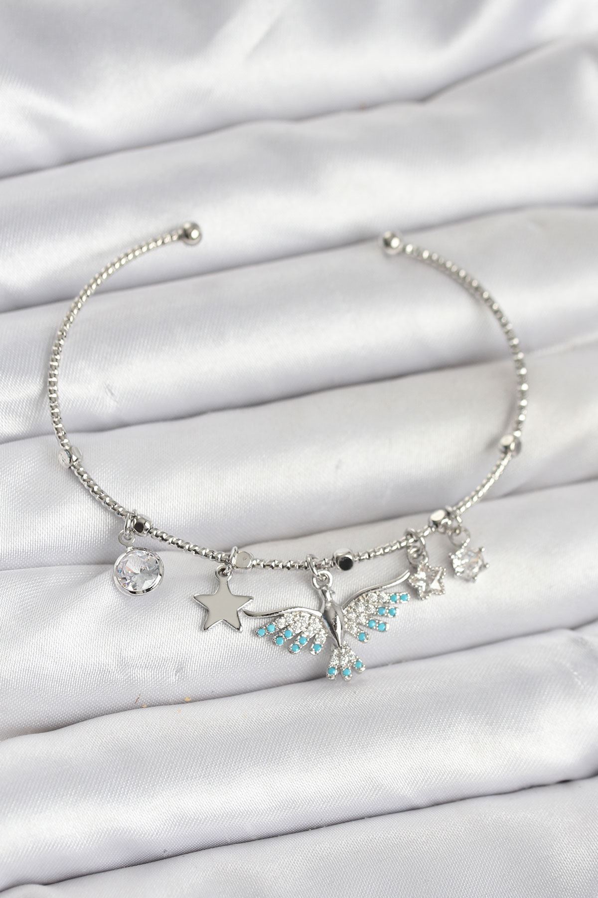YRTCL Anka Kuşu Charmlı Gümüş Renk Pirinç Kadın Bileklik