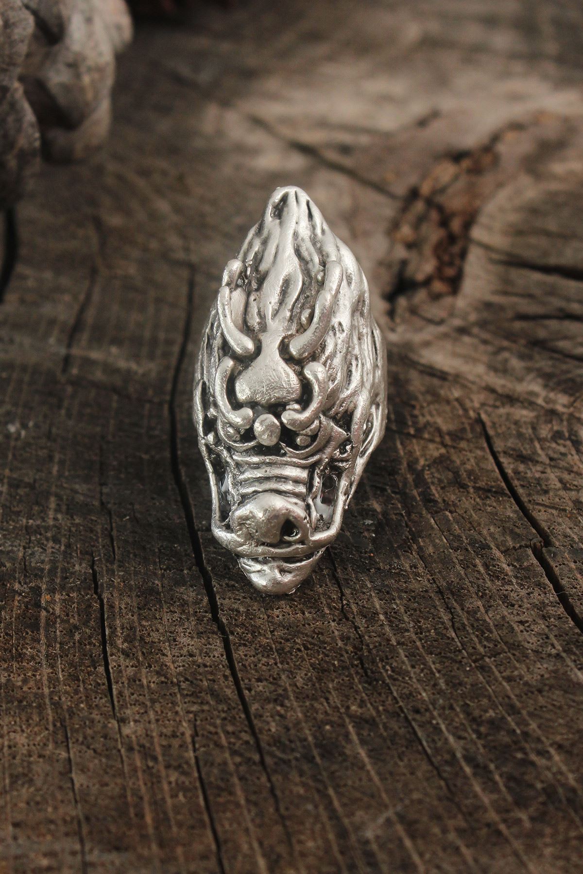 YRTCL Antik Gümüş Renk Ejderha Kafası Model Ayarlanabilir Erkek Yüzük