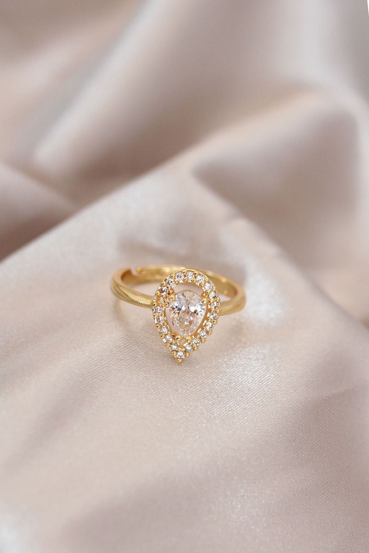 YRTCL Ayarlamalı Gold Renk Metal Zirkon Taşlı Damla Model Yüzük