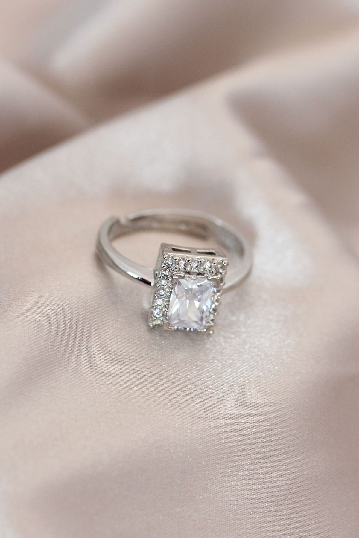 YRTCL Ayarlamalı Silver Renk Metal Zirkon ve Kristal Taşlı Dikdörtgen Model Yüzük