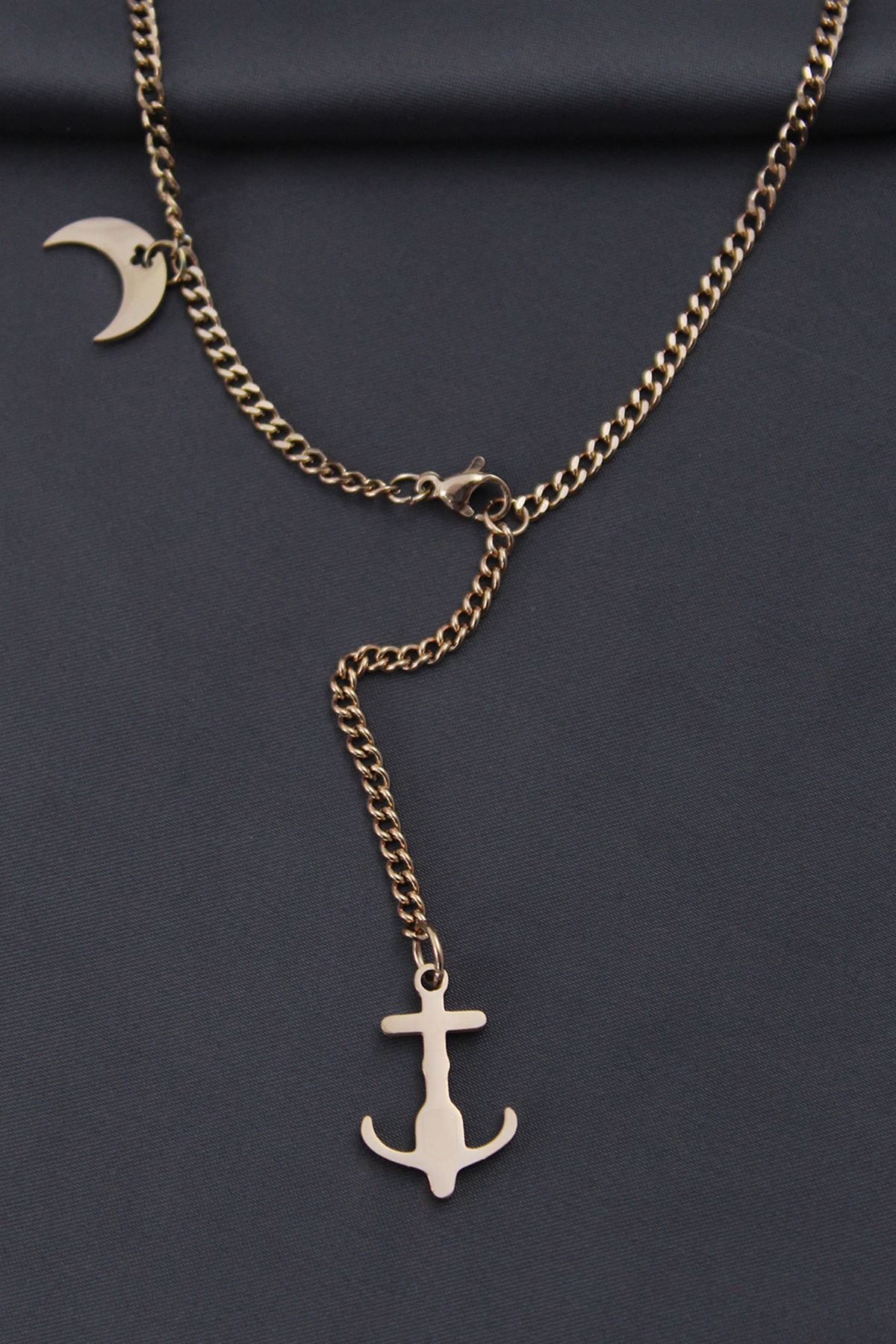YRTCL Çelik Rose Renk Çapa Tasarımlı Kadın Kolye
