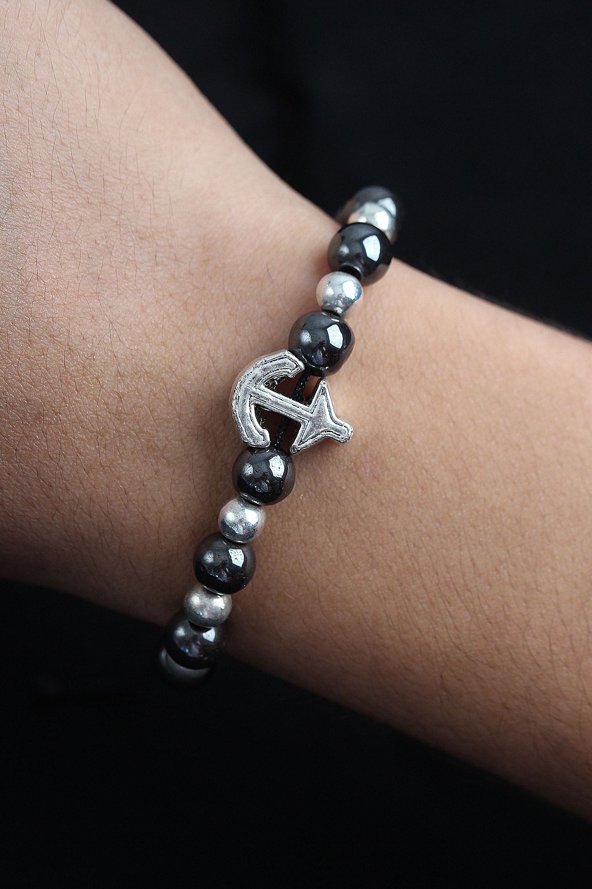 YRTCL Doğal Taş Çapa Model Gümüş Ve Füme Renk Asansörlü Erkek Bileklik