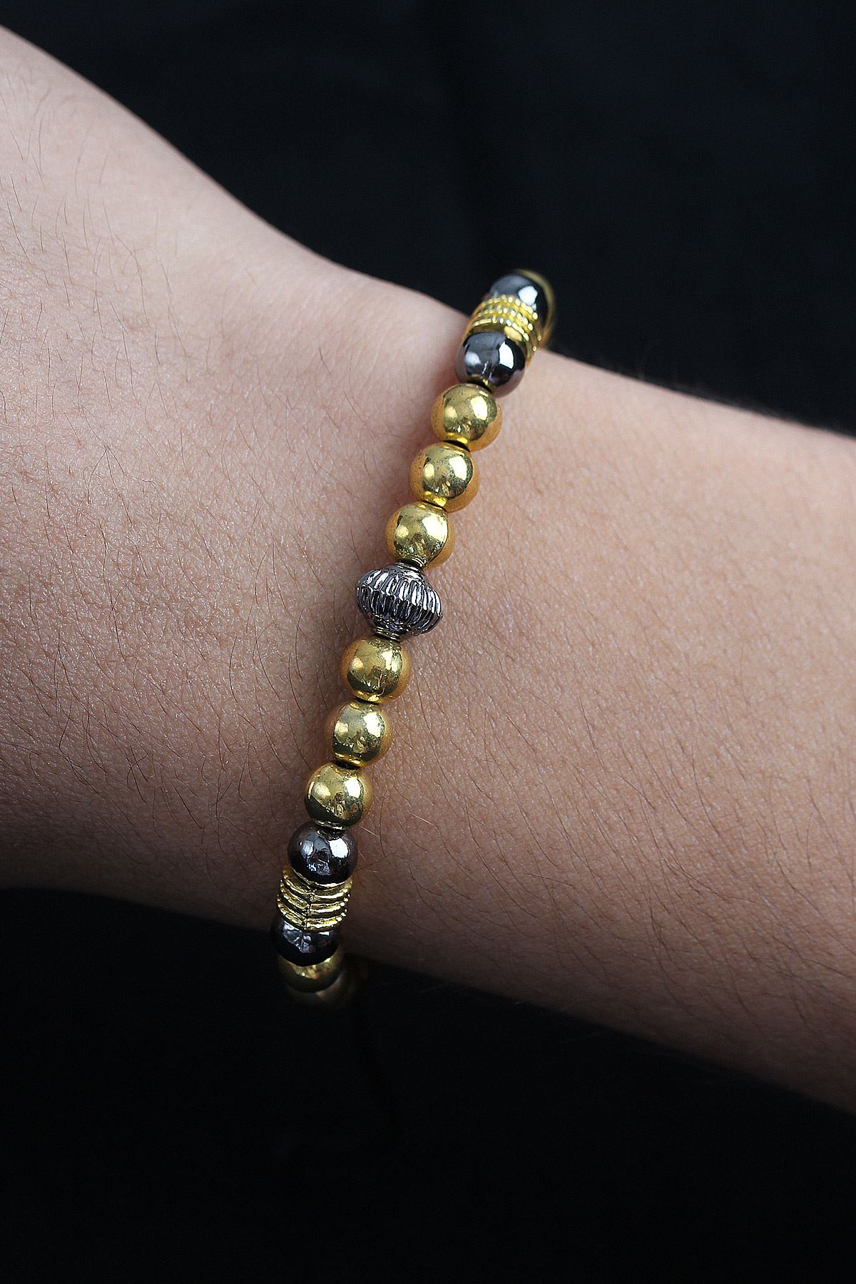 YRTCL Doğal Taş Çember Model Gold Ve Füme Renk Asansörlü Erkek Bileklik