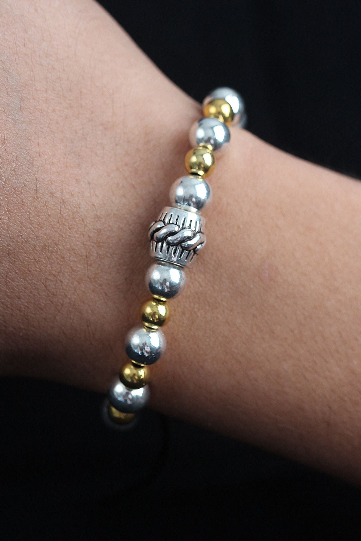 YRTCL Doğal Taş Sarmal Model Gold Ve Gümüş Renk Asansörlü Erkek Bileklik