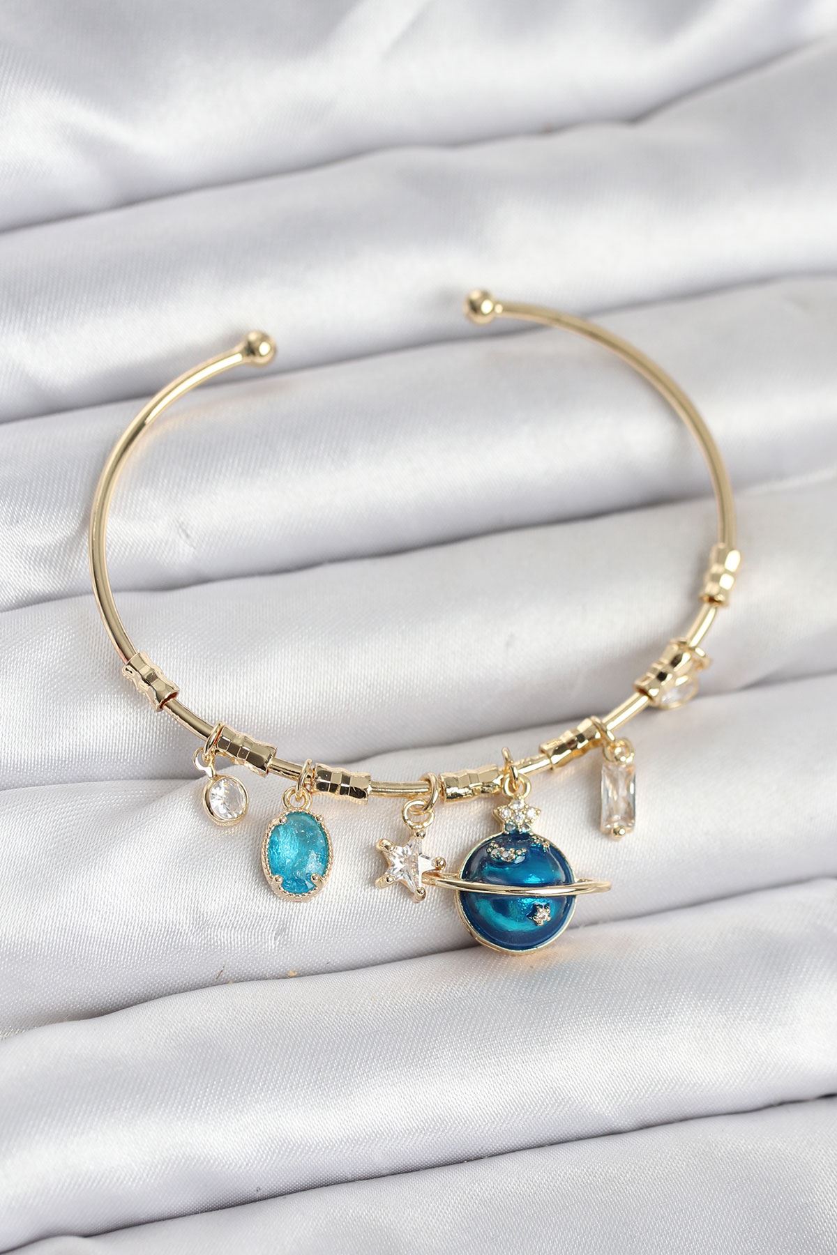 YRTCL Gezegen Charmlı Gold Renk Pirinç Kadın Bileklik
