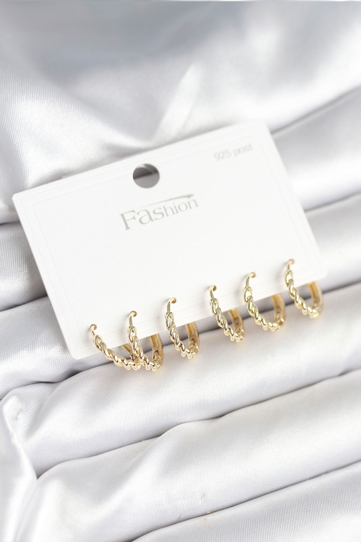 YRTCL Gold Renk Burgu Halka Model 925 Ayar Gümüş Çivili Pirinç Küpe Seti