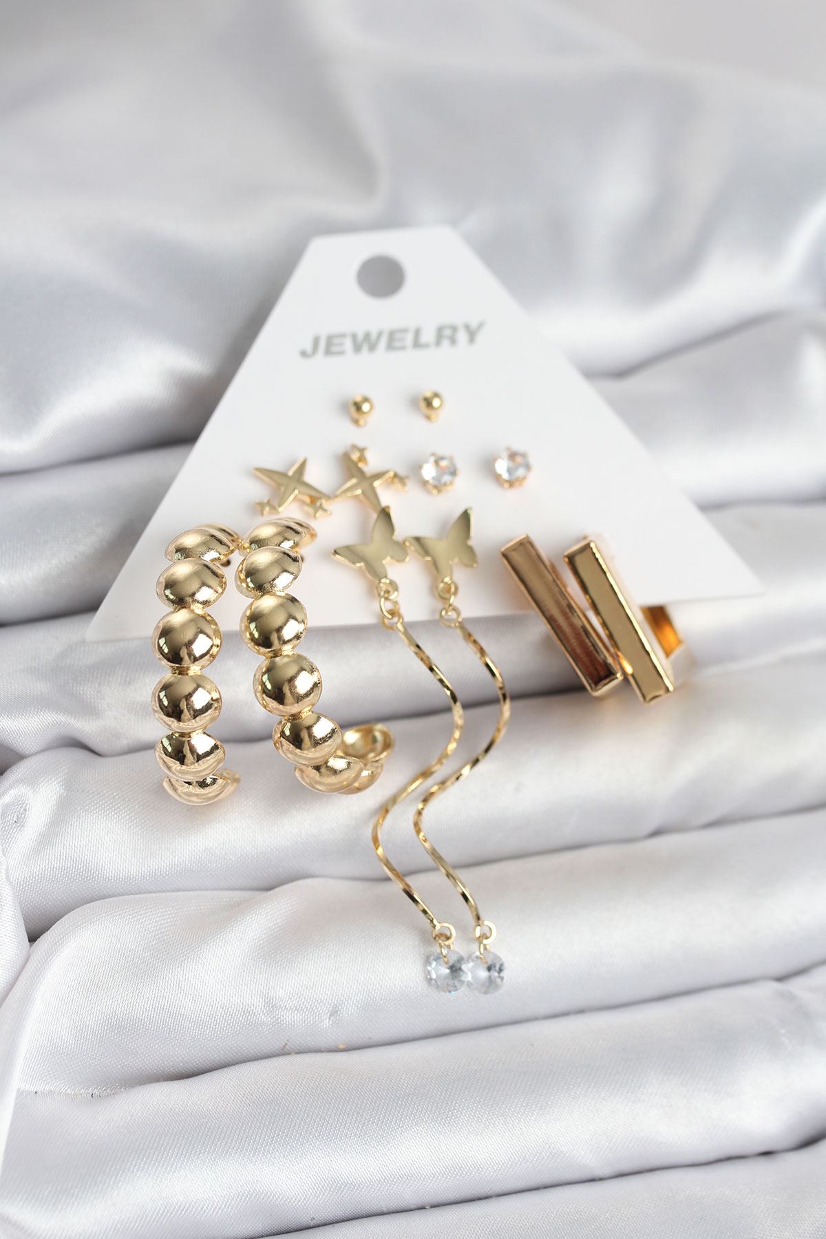 YRTCL Gold Renk Pirinç 6 Çift Kadın Küpe Seti
