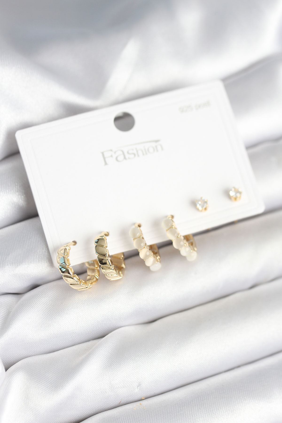 YRTCL Gold Renk Pirinç Halka 925 Ayar Gümüş Çivili Kadın Küpe Seti