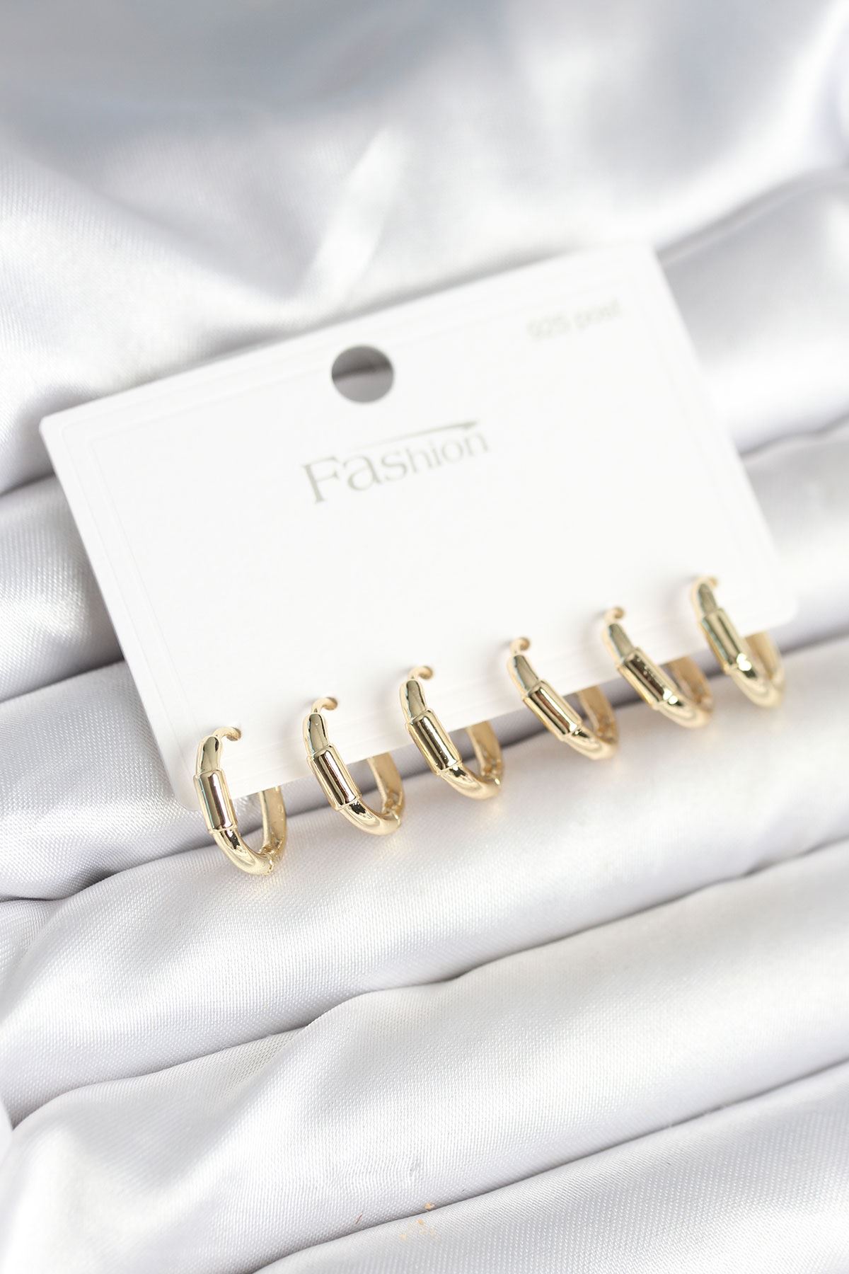 YRTCL Pirinç Gold Renk Zirkon Taşlı 3'Lü Sıralı Model Kadın Kıkırdak Küpe