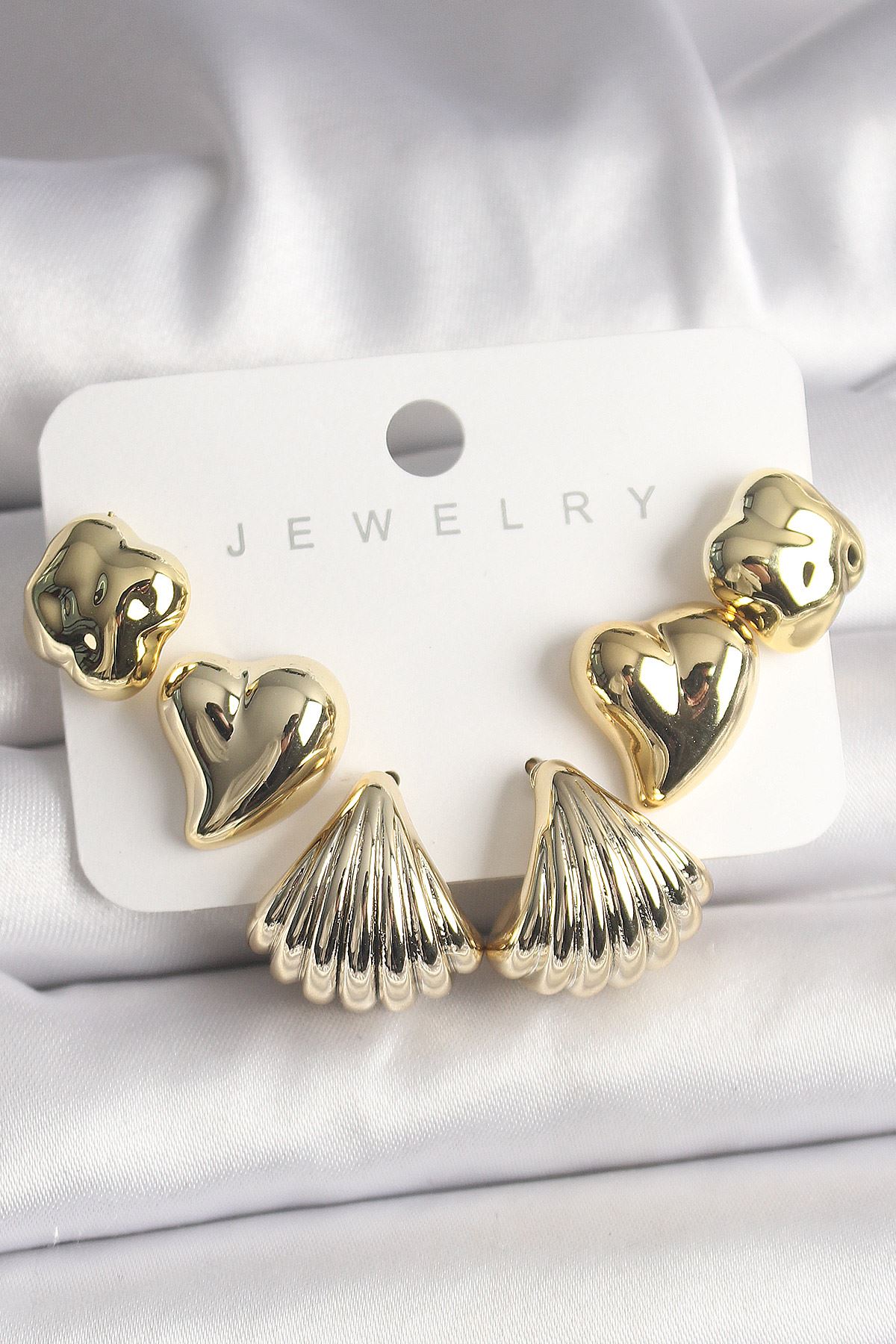 YRTCL Gold Renk Yonca Kalp Deniz Kabuğu Figür CCB Kadın Küpe Seti