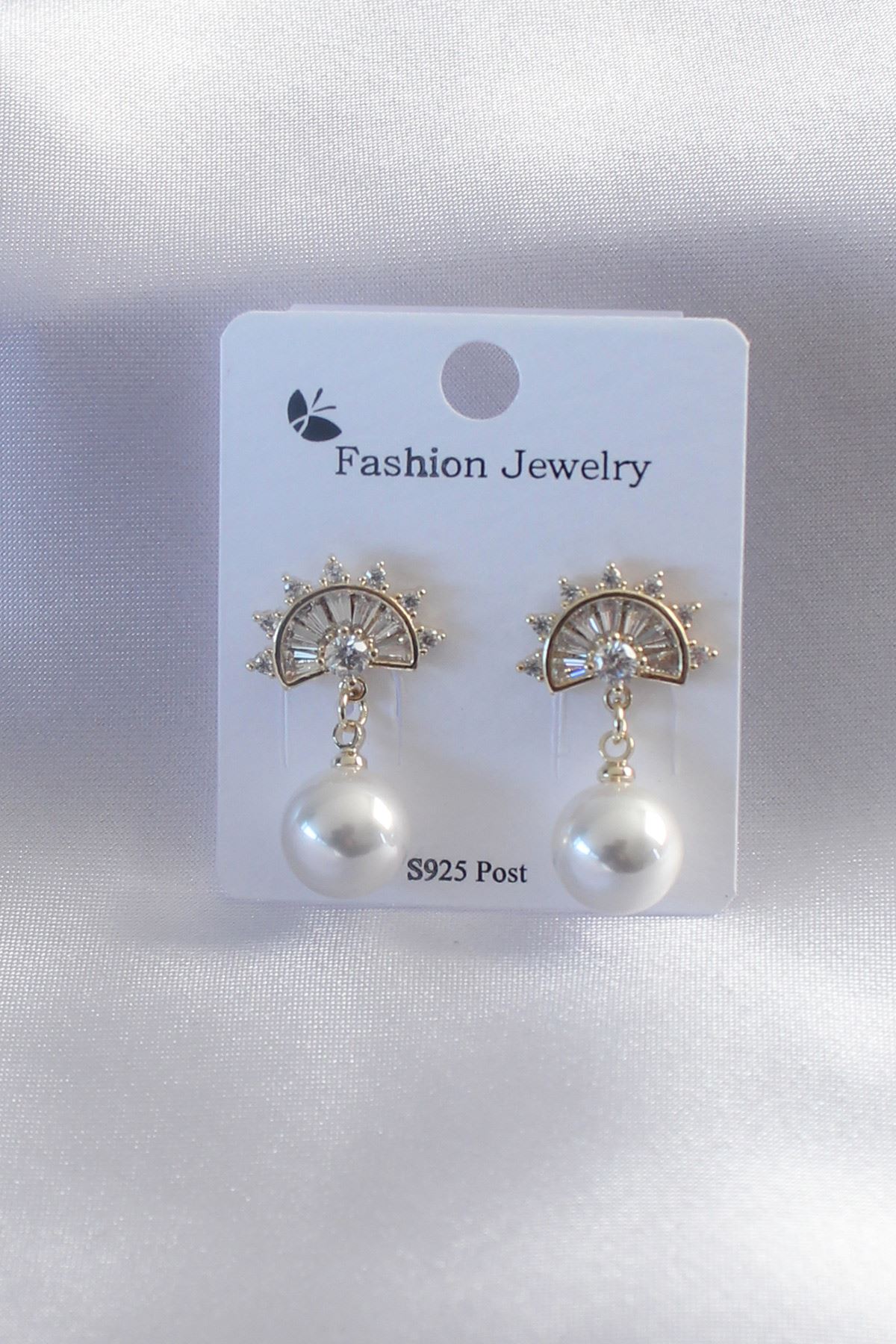 YRTCL Gold Renk Zirkon Taşlı İnci Sallantı Model Kadın Küpe
