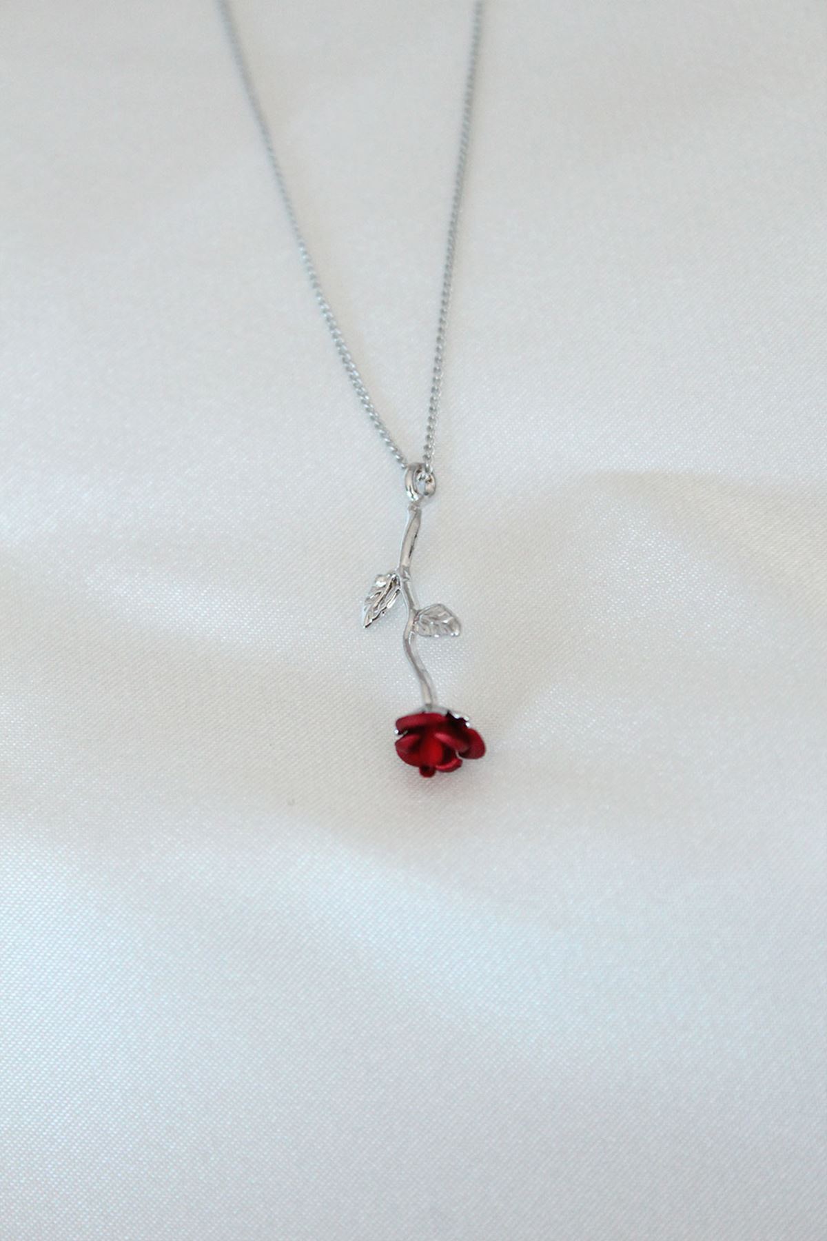 YRTCL Gümüş Kaplama Kırmızı Gül Figürlü Kadın Kolye