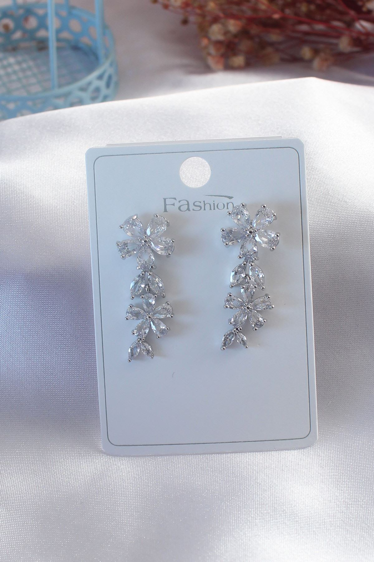 YRTCL Gümüş Renk Çiçek Model Zirkon Taşlı Kadın Küpe
