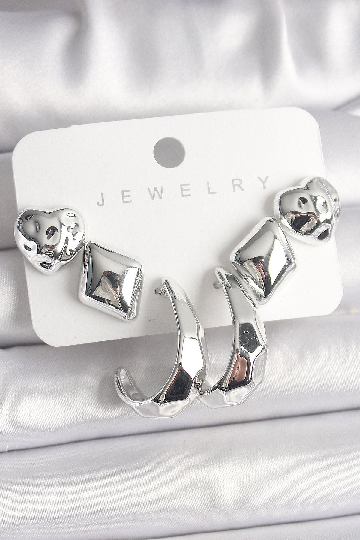 YRTCL Gümüş Renk Kalp Halka Figür CCB Plastik Kadın Küpe Seti