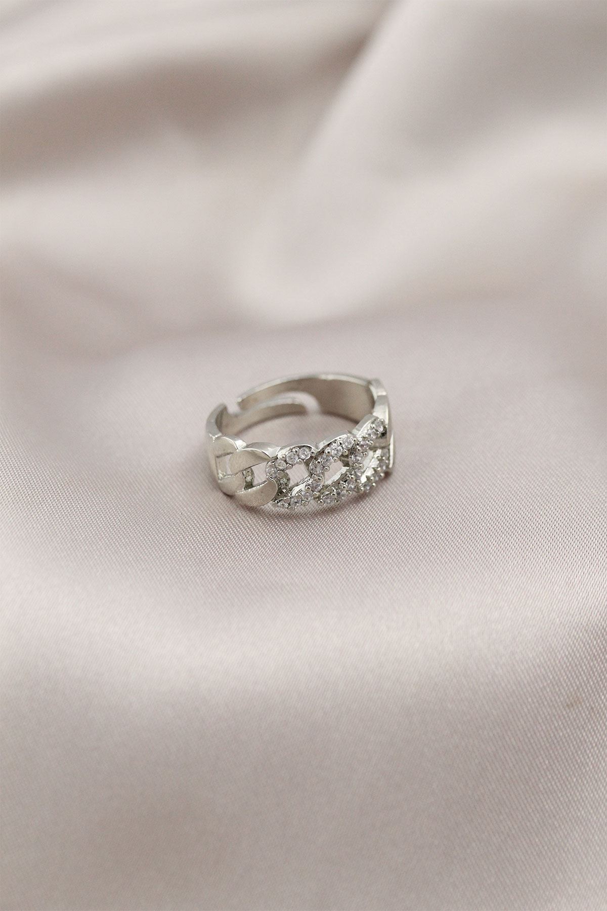 YRTCL Gümüş Renk Metal Zincir Model Taşlı Kadın Yüzük