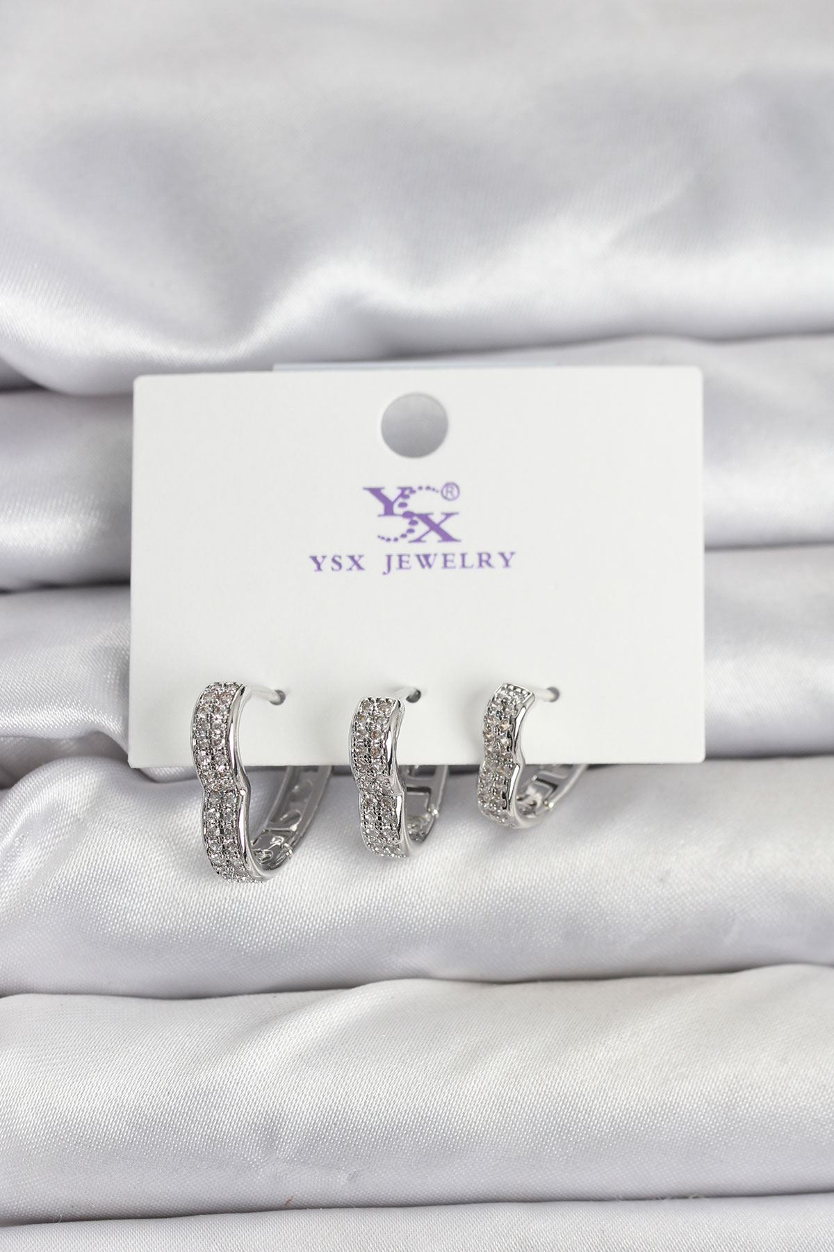 YRTCL Gümüş Renk Pirinç Zirkon Taşlı Kalpli Kadın Küpe