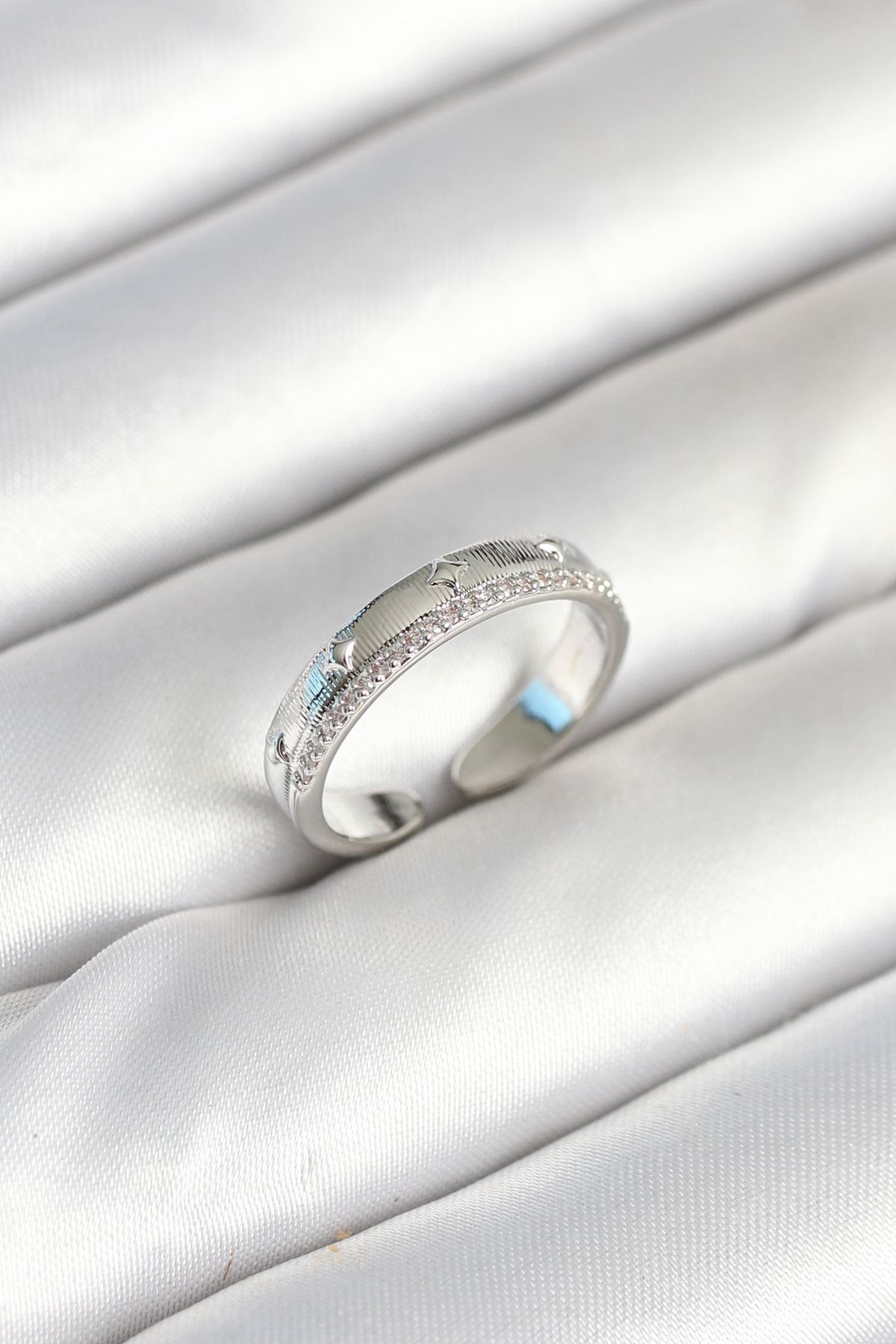 YRTCL Pirinç Gümüş Renk Zirkon Taşlı Ayarlanabilir Model Kadın Yüzük
