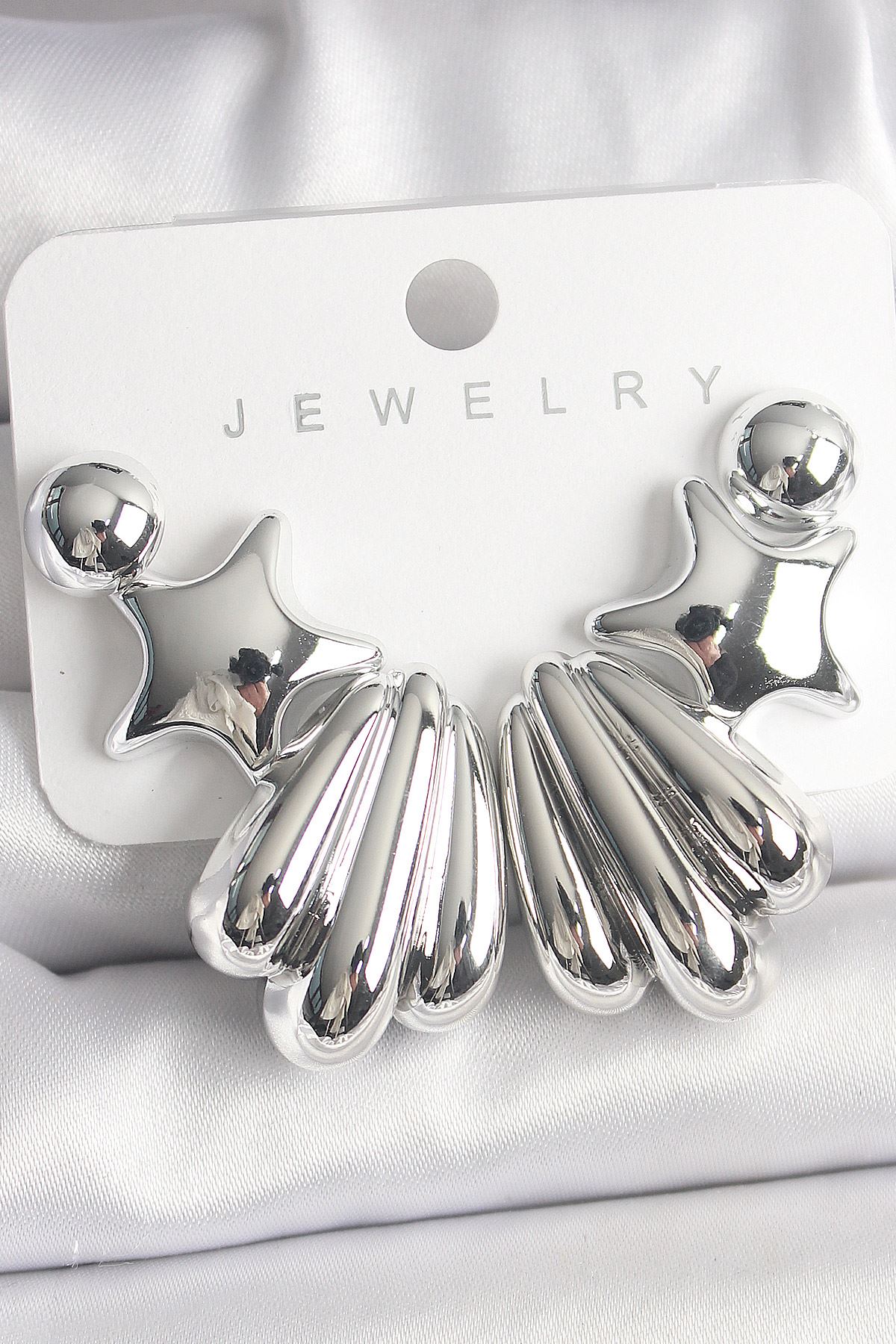YRTCL Gümüş Renk Yıldız Deniz Kabuğu Model CCB Plastik Kadın Küpe Seti