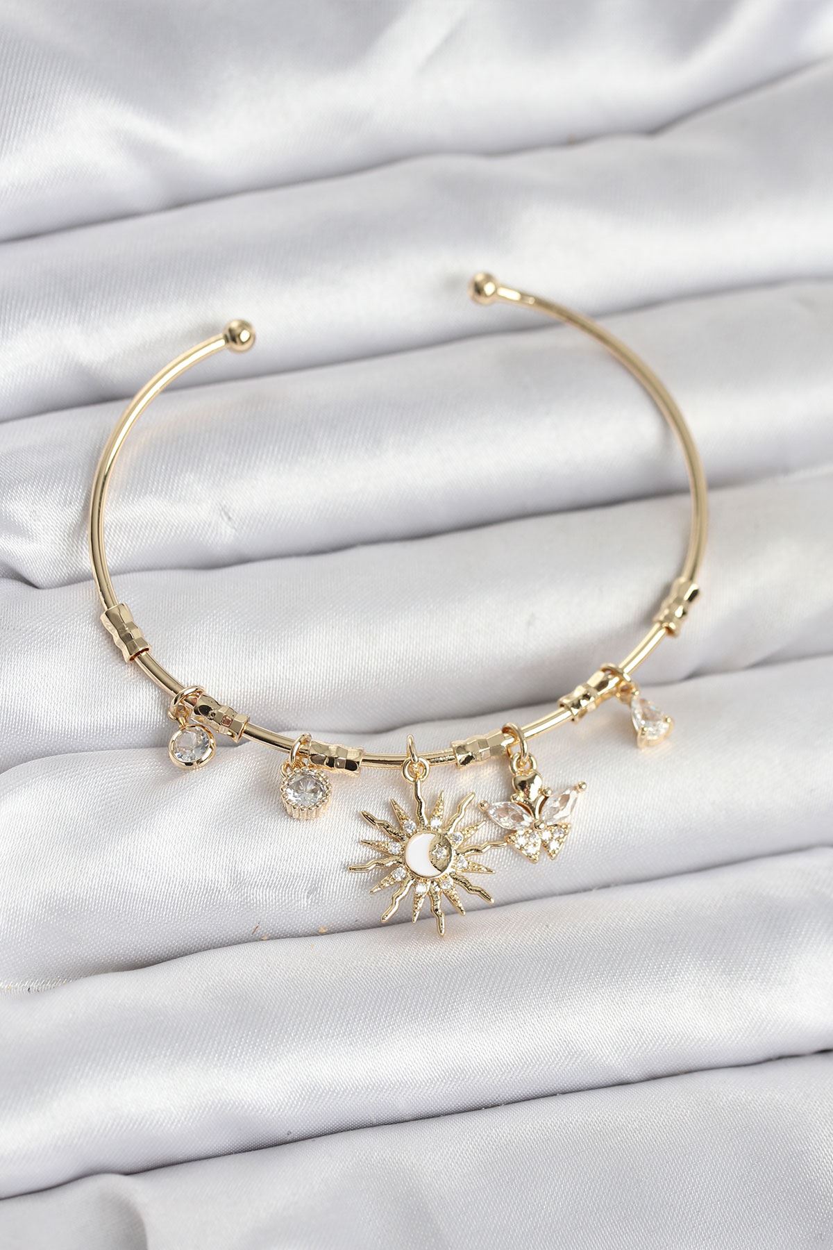 YRTCL Güneş Charmlı Gold Renk Pirinç Kadın Bileklik