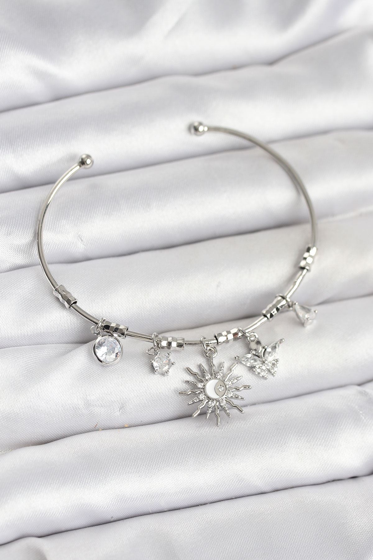 YRTCL Güneş Charmlı Gümüş Renk Pirinç Kadın Bileklik