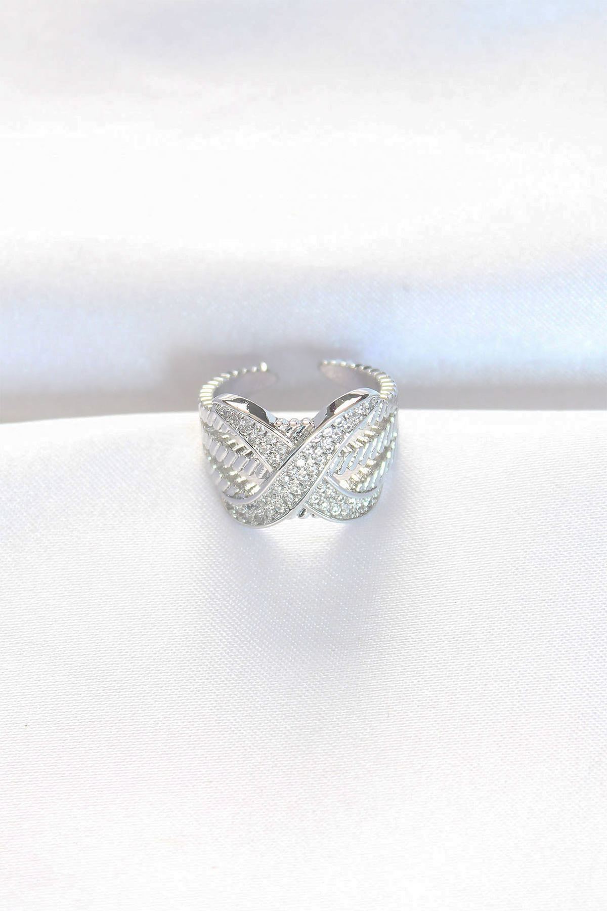 YRTCL Kalın Zirkon Taşlı Silver Renk Ayarlanabilir X Tasarım Yüzük