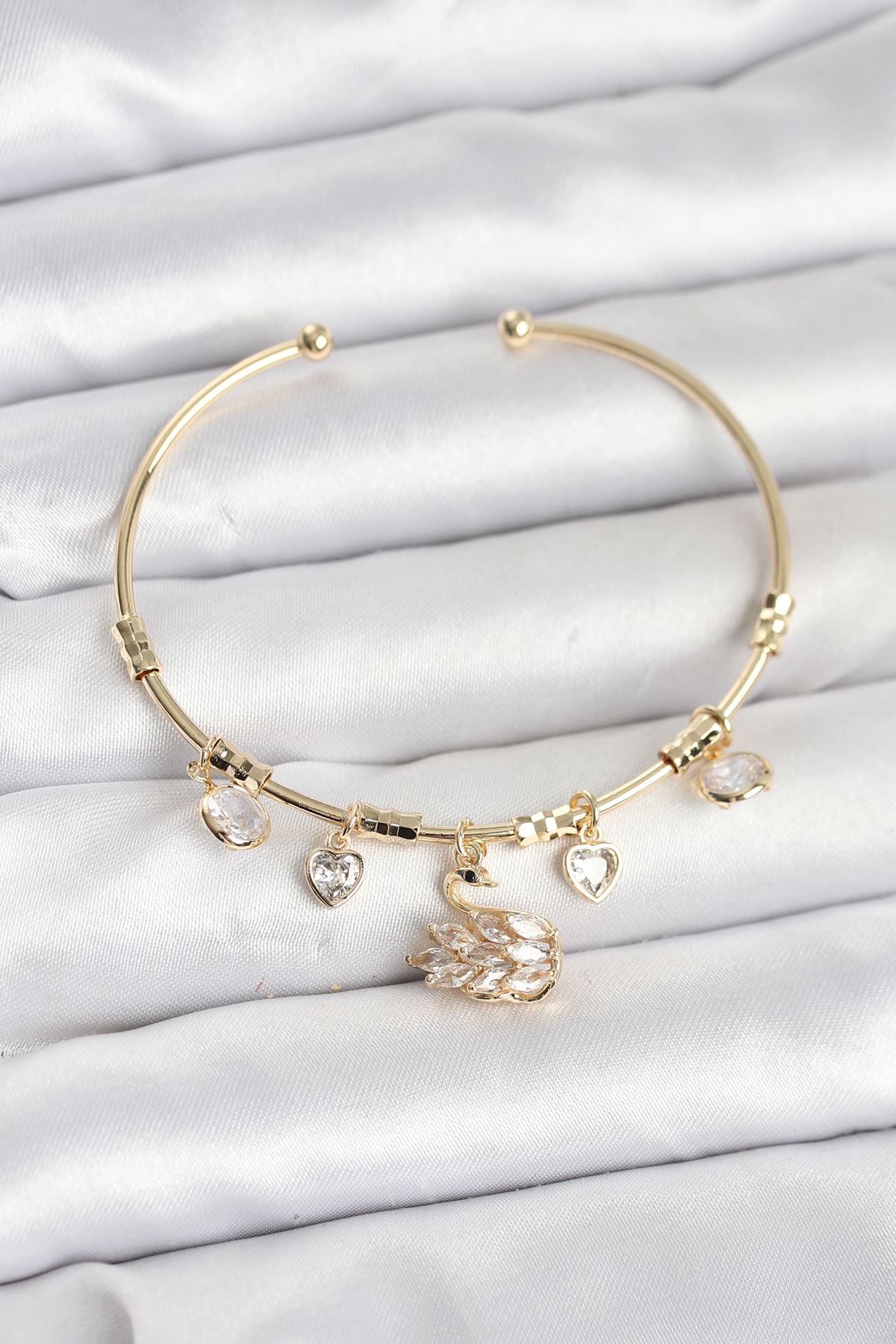 YRTCL Kuğu Charmlı Gold Renk Kadın Bileklik