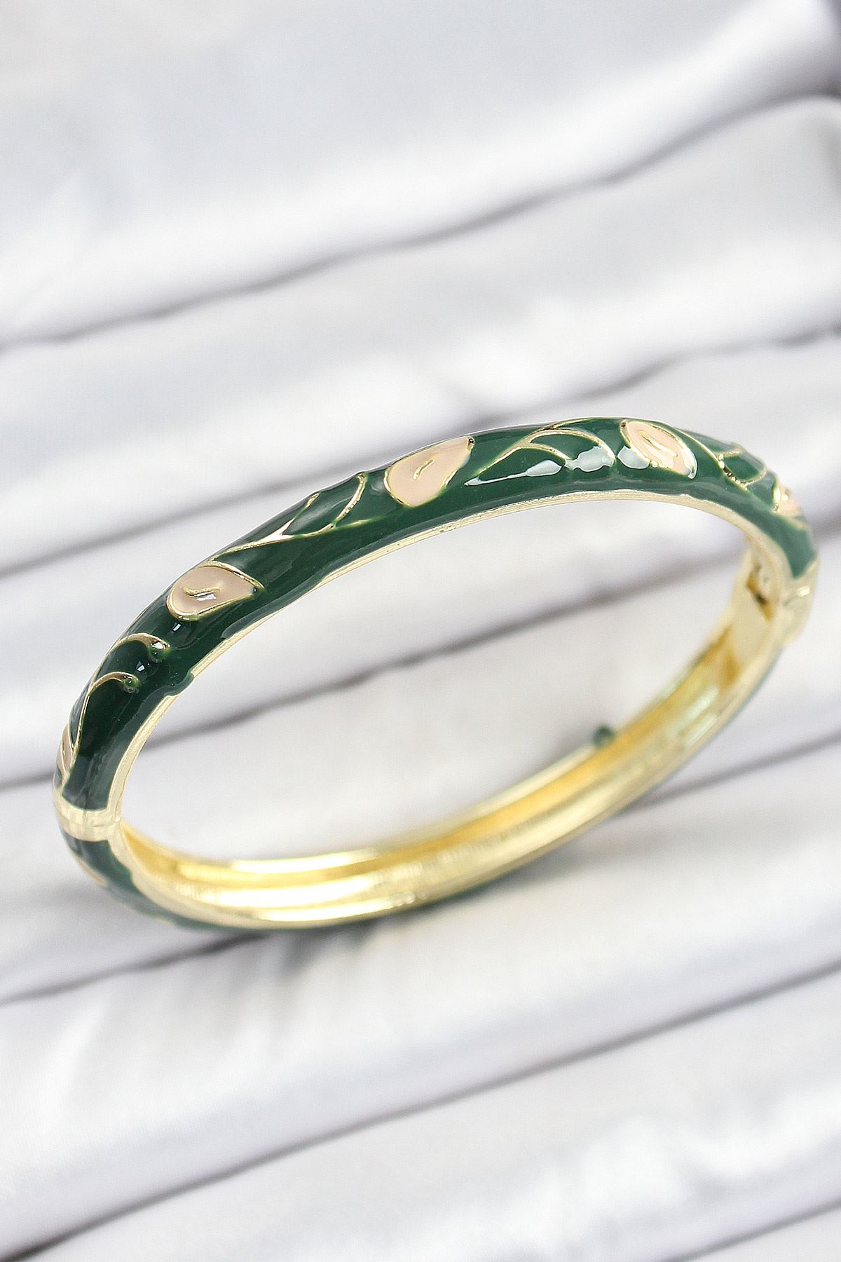 YRTCL Mineli Pirinç Gold Renk Yeşil Çiçek Motifli Kadın Kelepçe