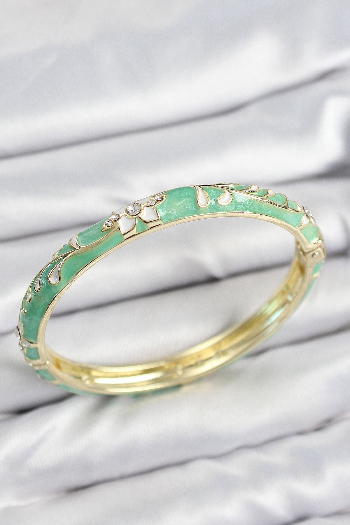 YRTCL Mineli Pirinç Zirkon Taşlı Yeşil Çiçek Motifli Gold Kadın Kelepçe