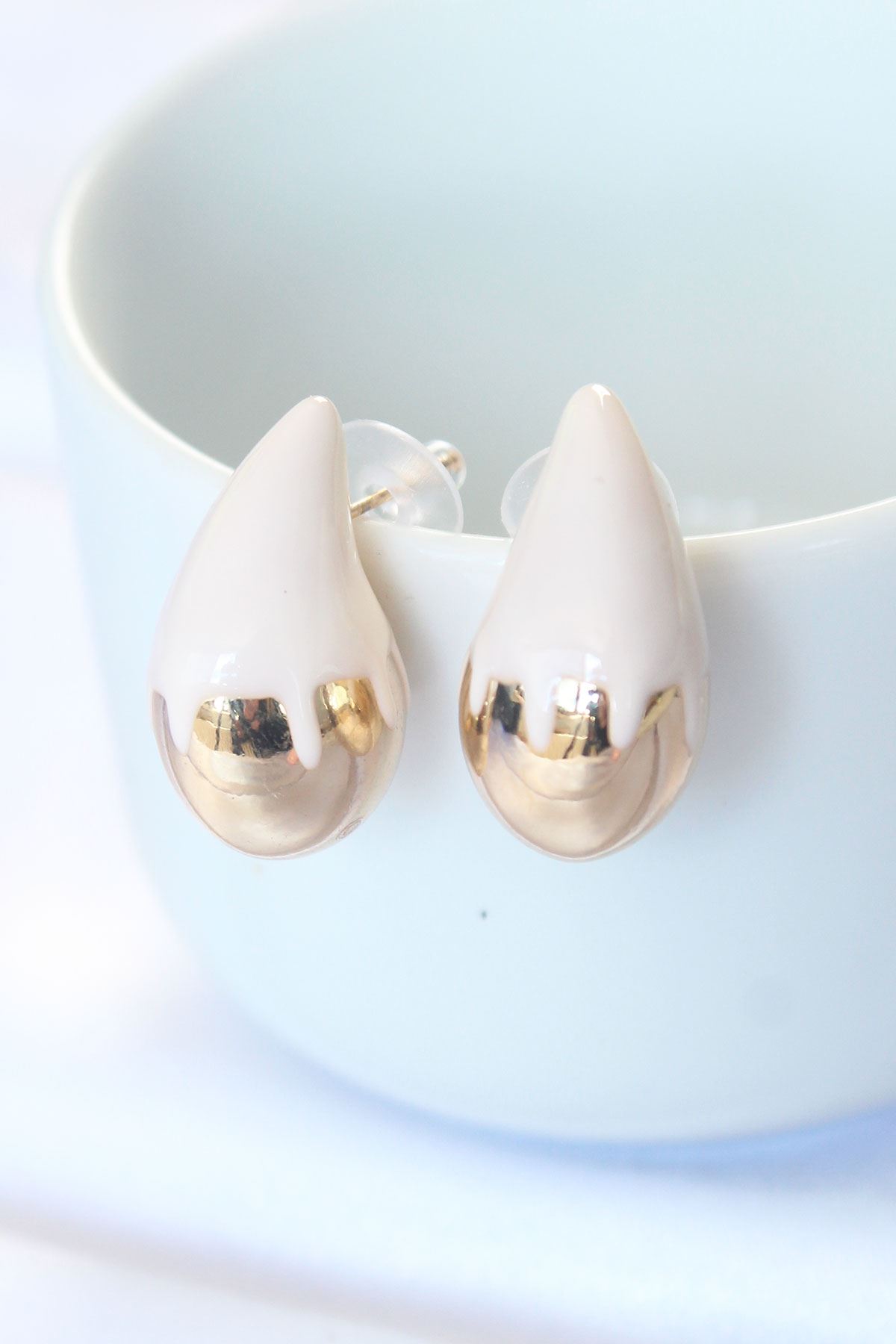 YRTCL Minimal Beyaz Mineli Çift Renk Damla Küpe