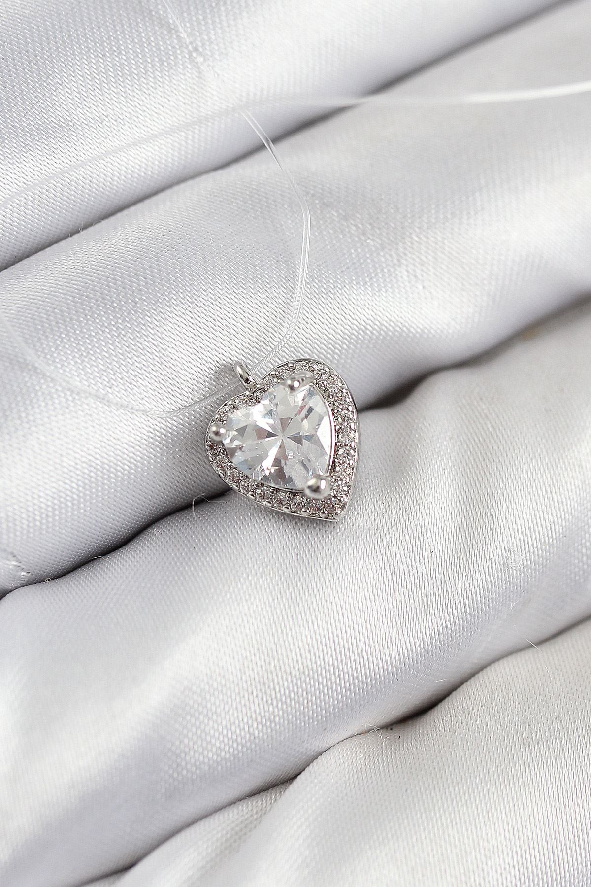 YRTCL Pirinç Zirkon Taşlı Kalp Model Gümüş Renk Y Kolye